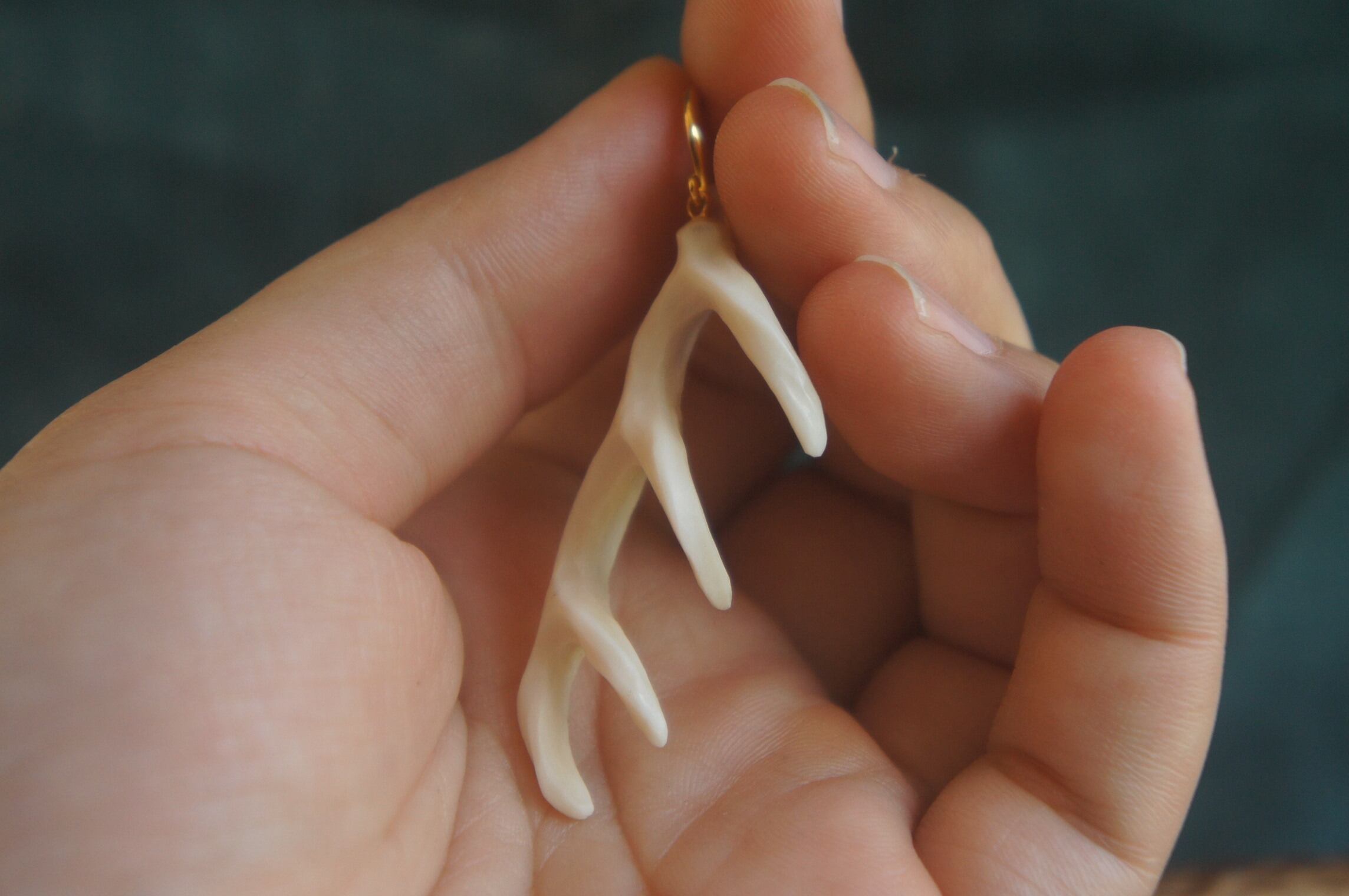鹿角彫刻「鹿角」ピアス 三段角・ツルツル【A】