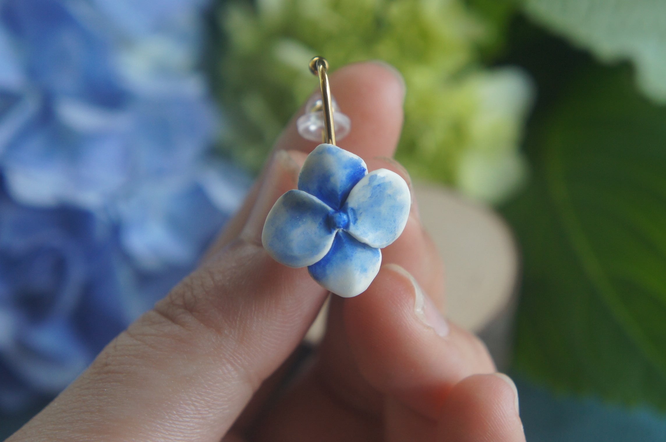 「鹿角彫刻「紫陽花 ひとひら」ピアス」