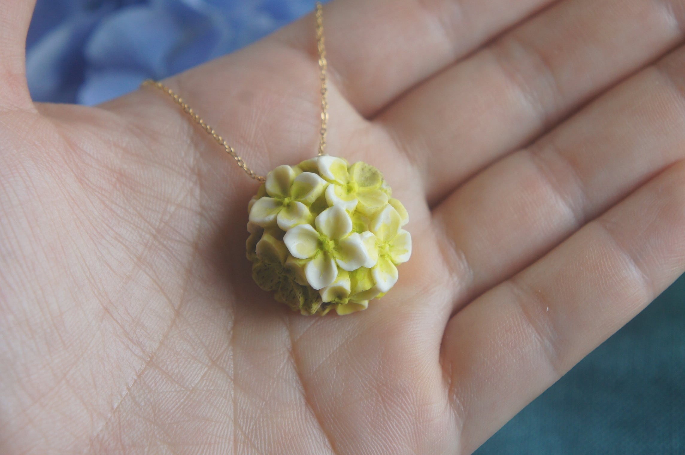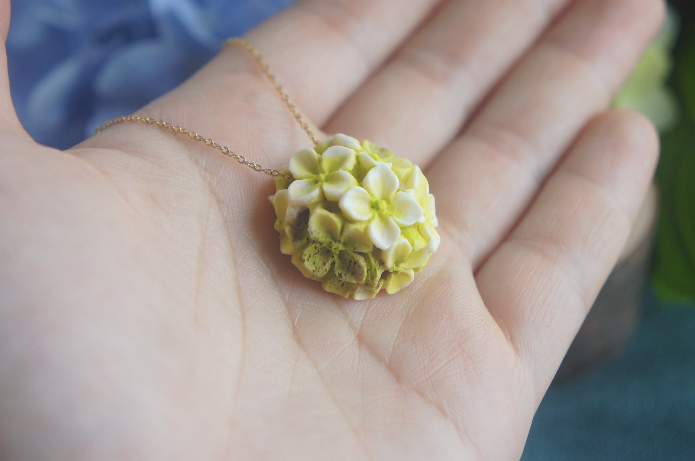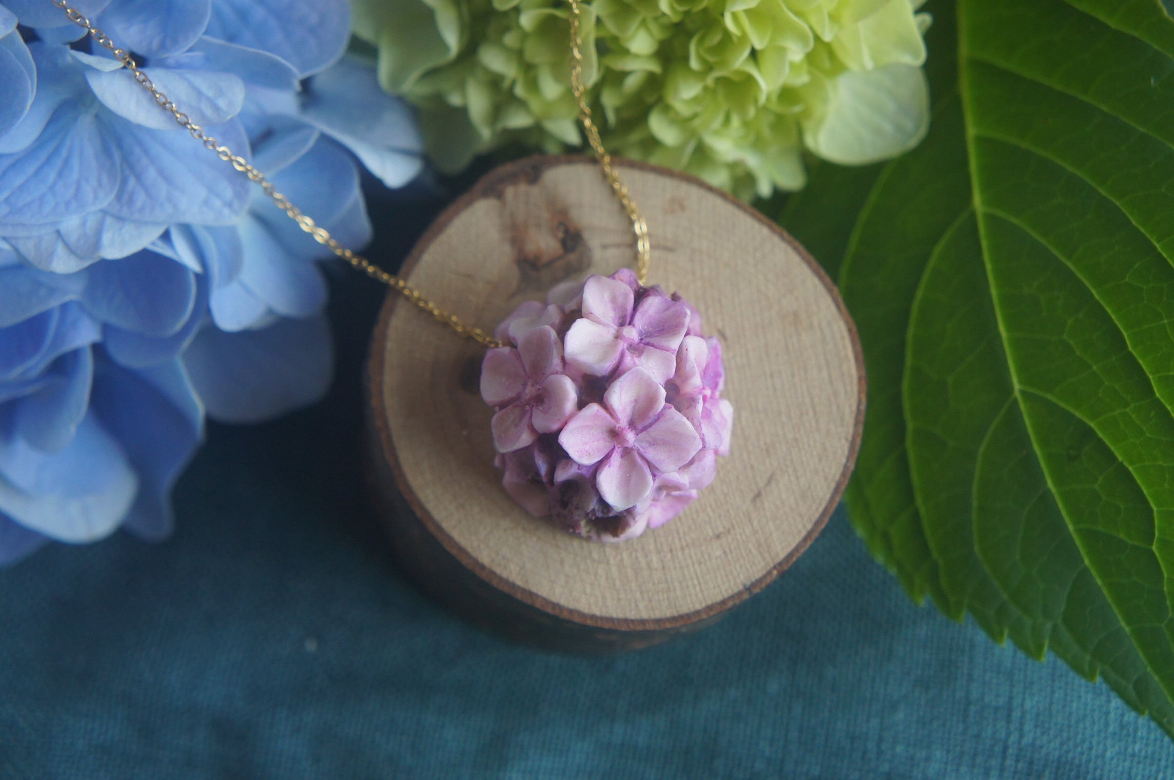 「鹿角彫刻「紫陽花 一朶」ネックレス」