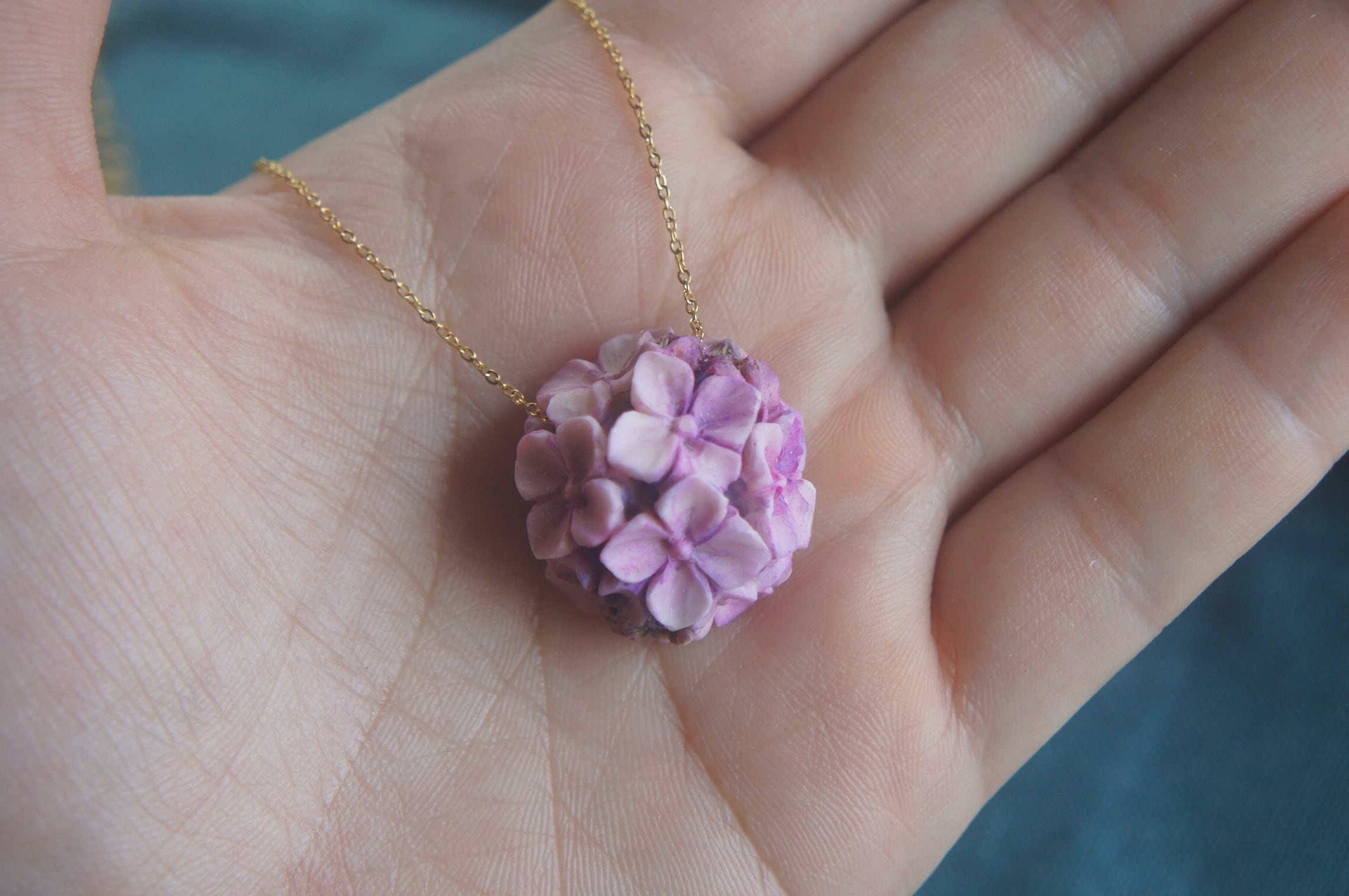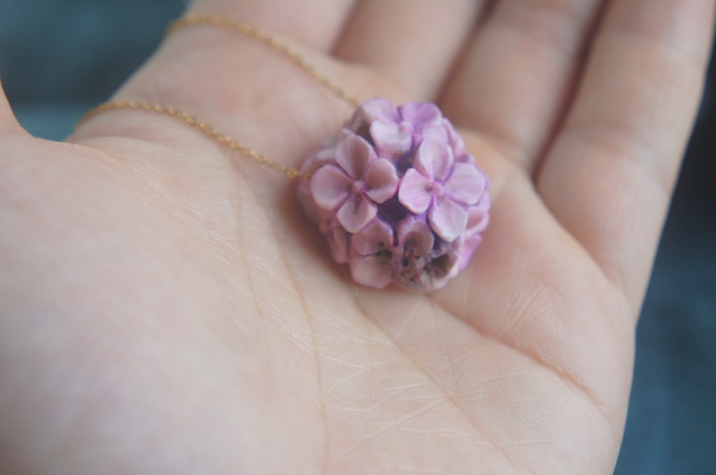 鹿角彫刻「紫陽花 一朶」ネックレス