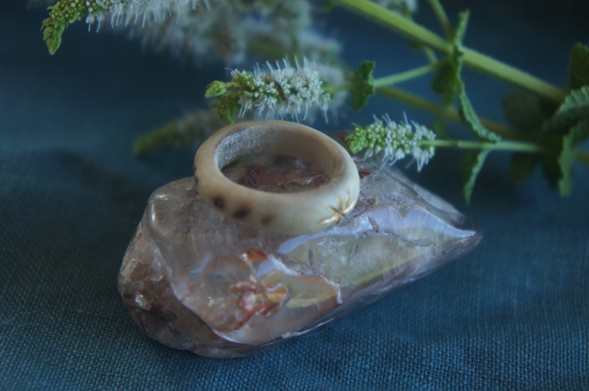 シンプルな造形のリングに金彩の月と星を彫りこみました。