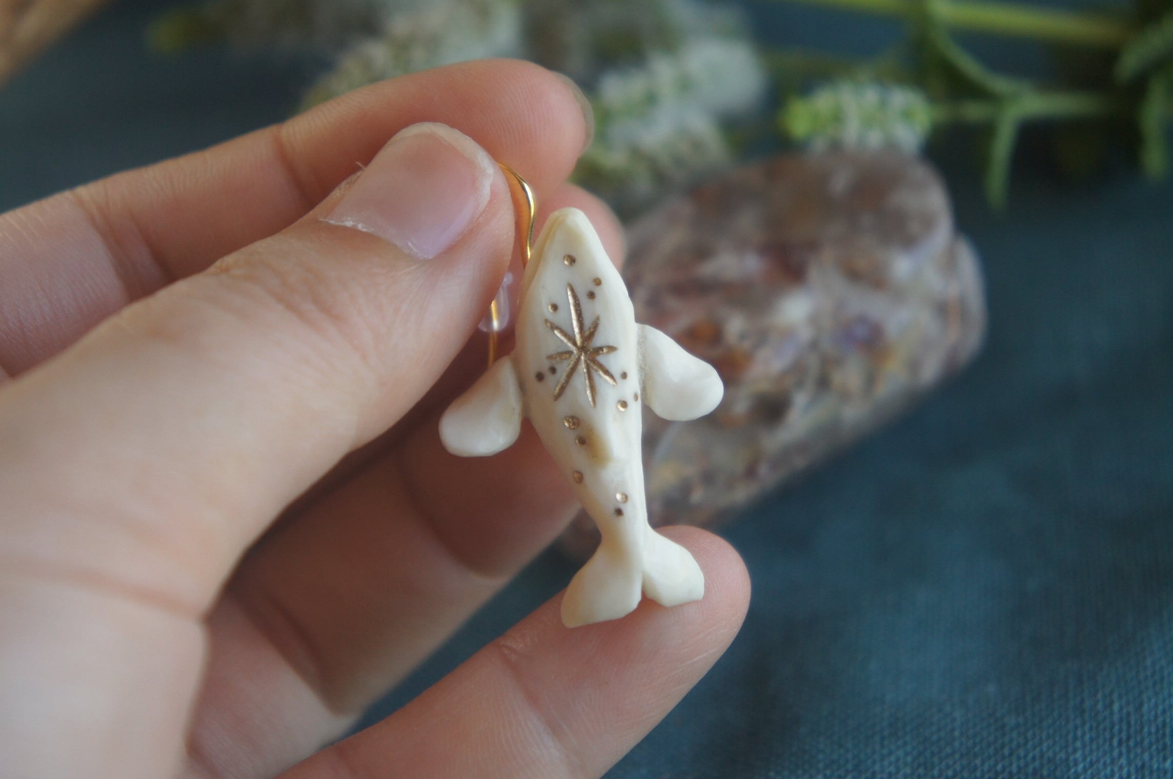 鹿角彫刻「星と座頭鯨」ピアス