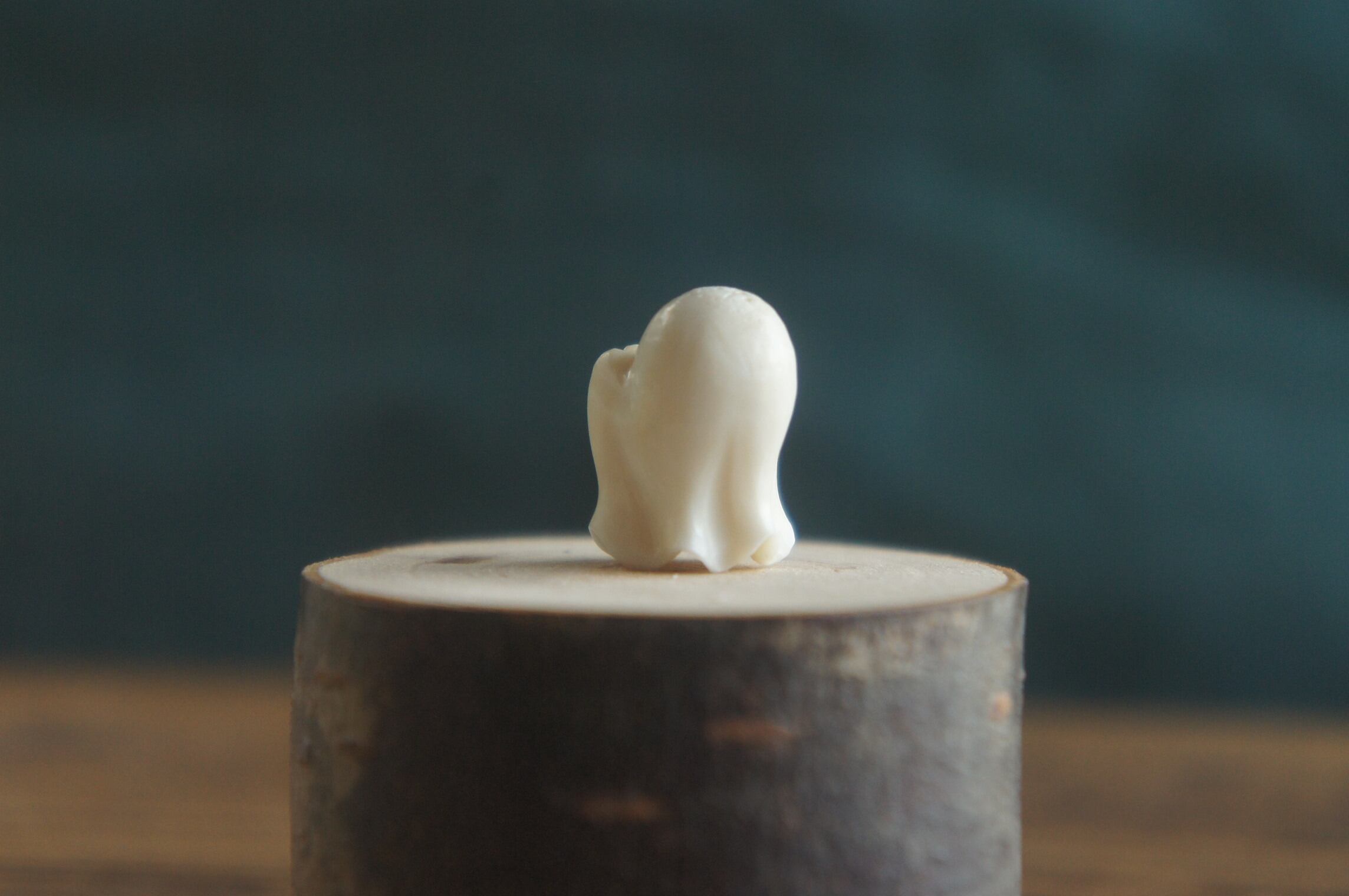 鹿の角から彫刻した、指先ほどの小さなおばけ。