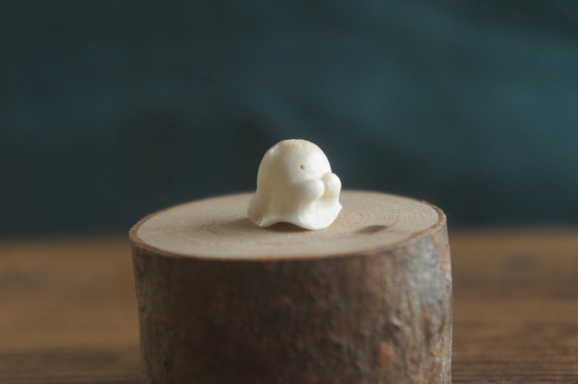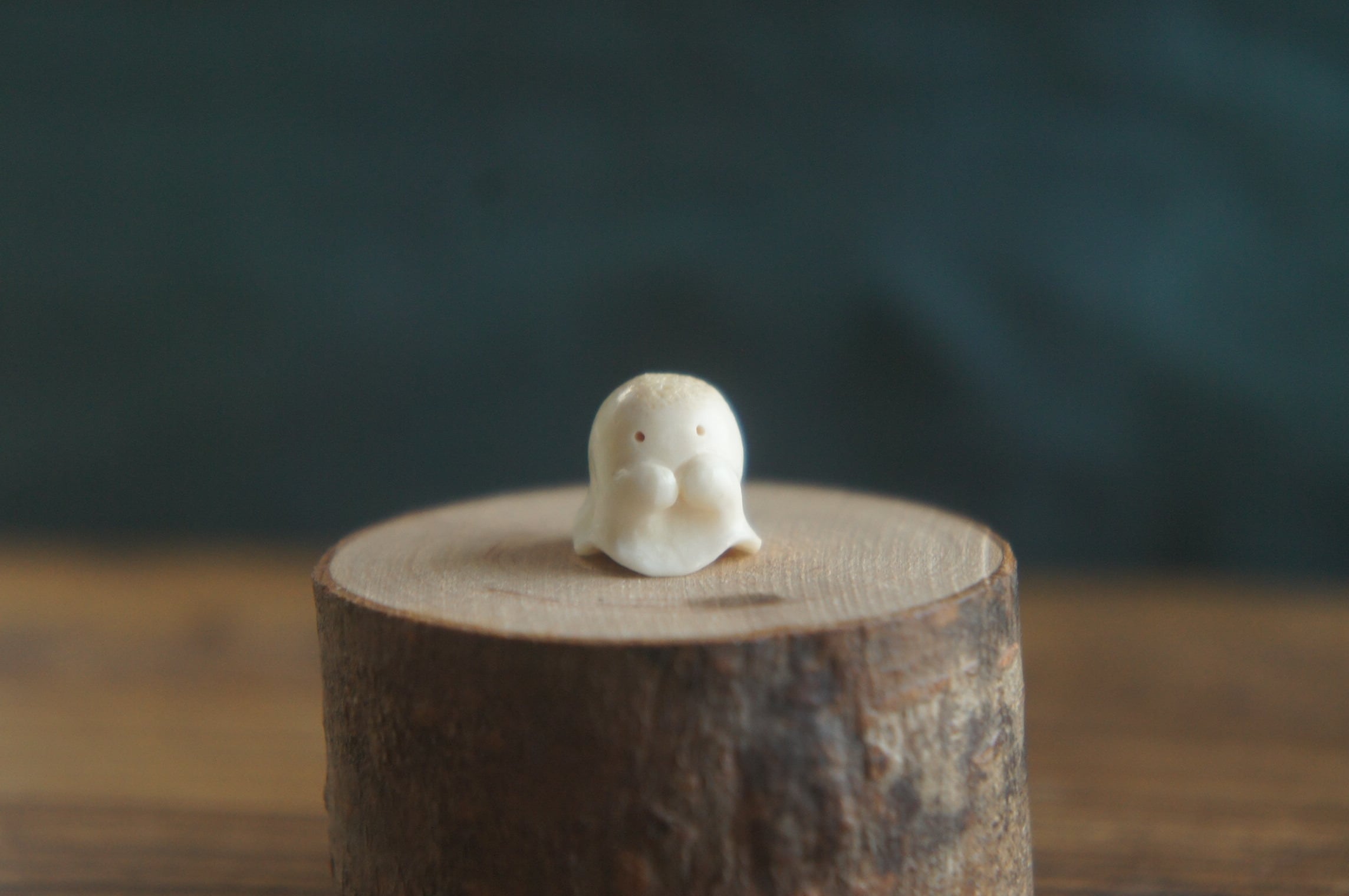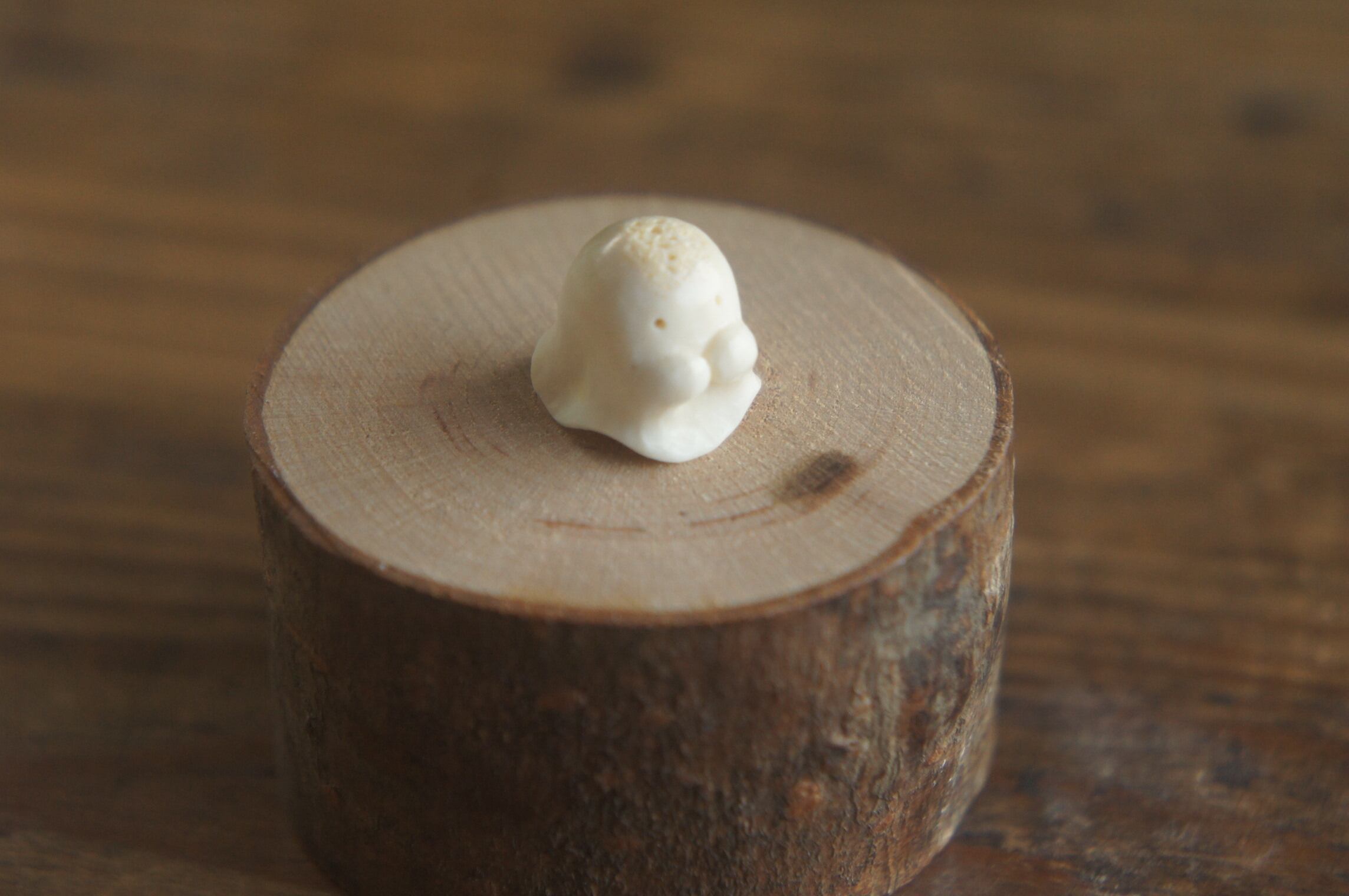 鹿の角から彫刻した、指先ほどの小さなおばけ。