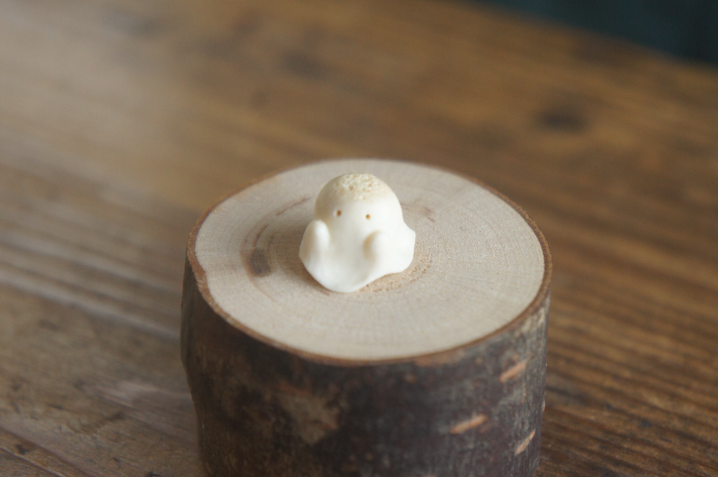 鹿の角から彫刻した、指先ほどの小さなおばけ。