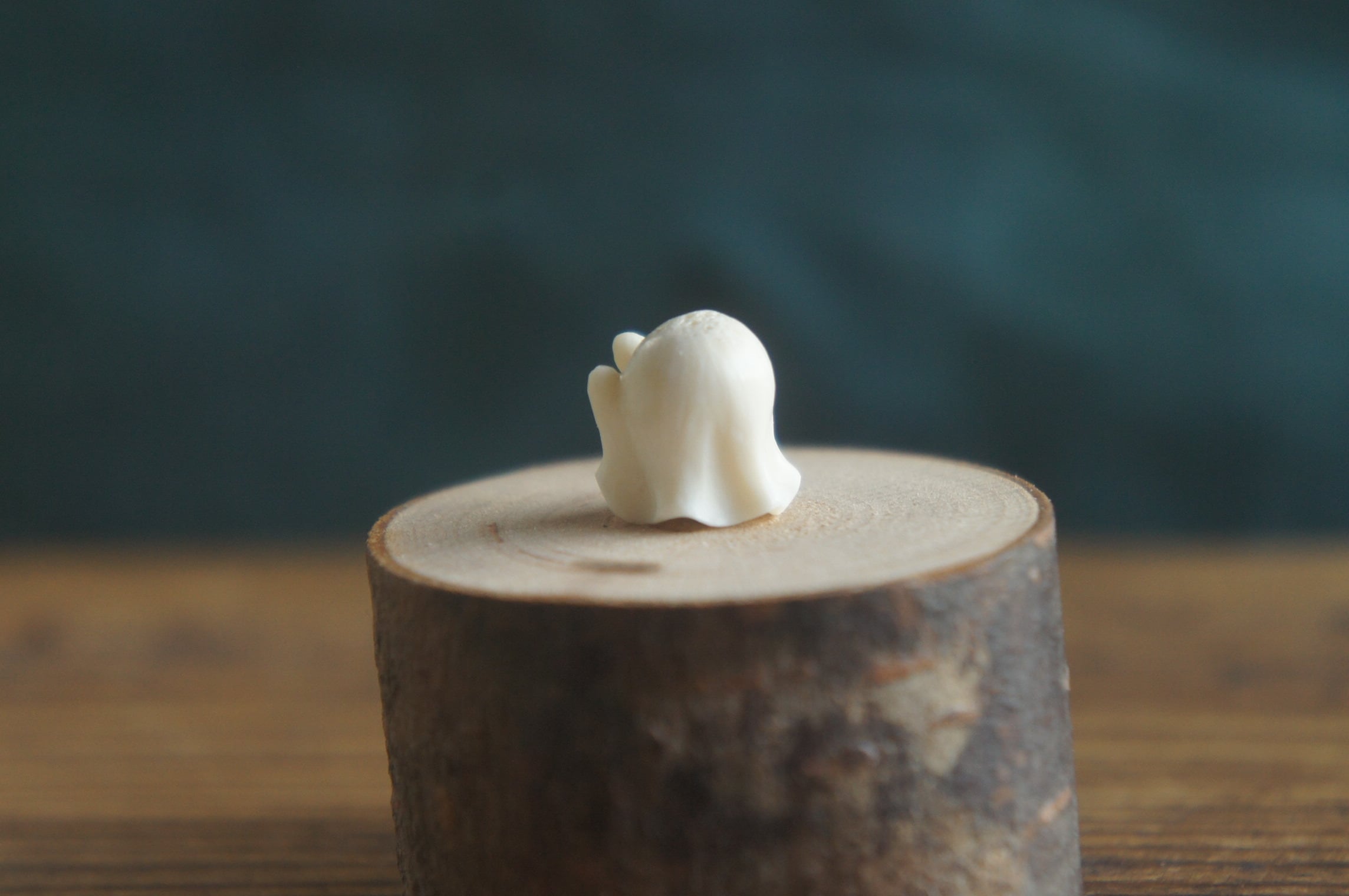 鹿の角から彫刻した、指先ほどの小さなおばけ。
