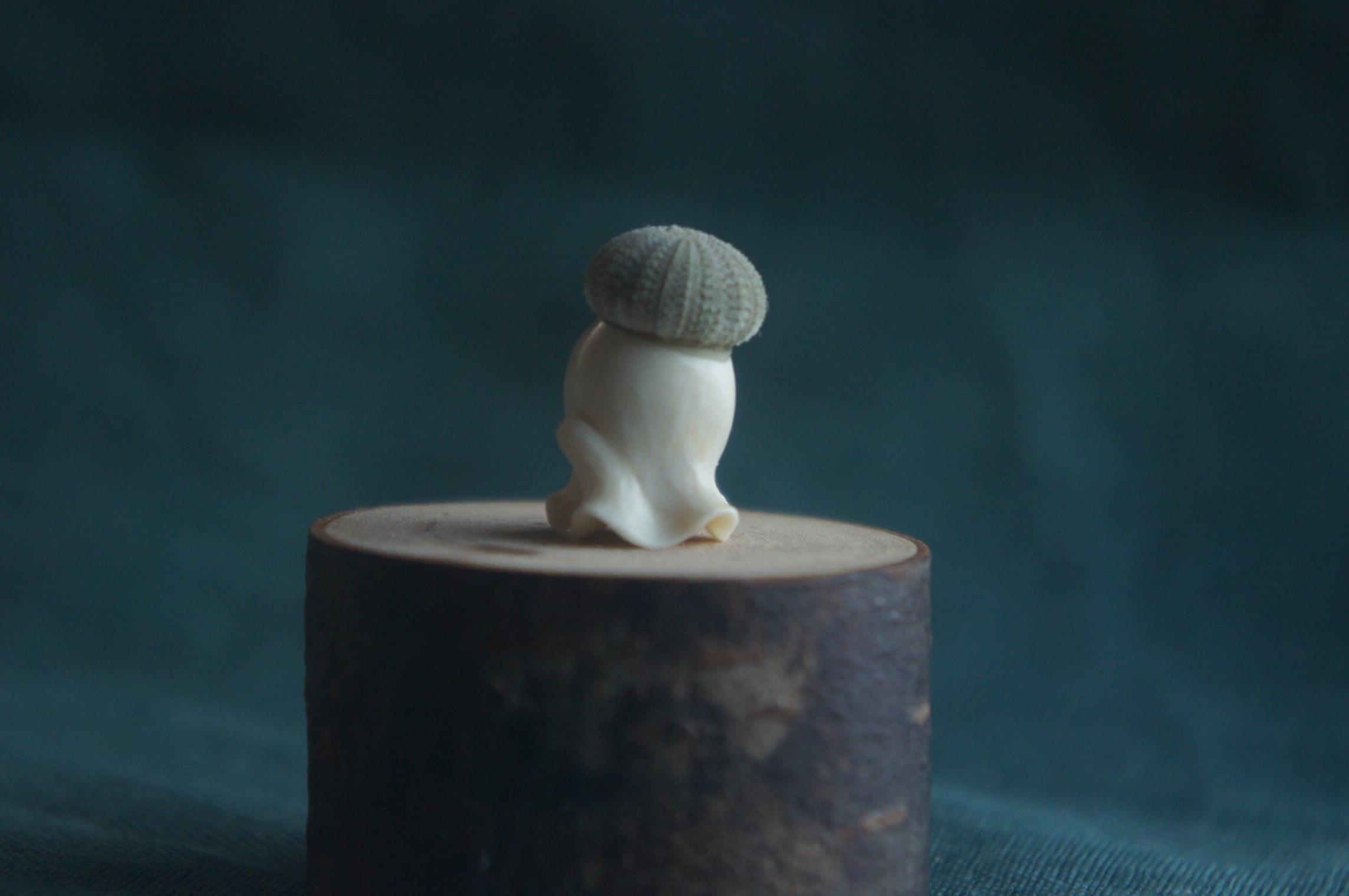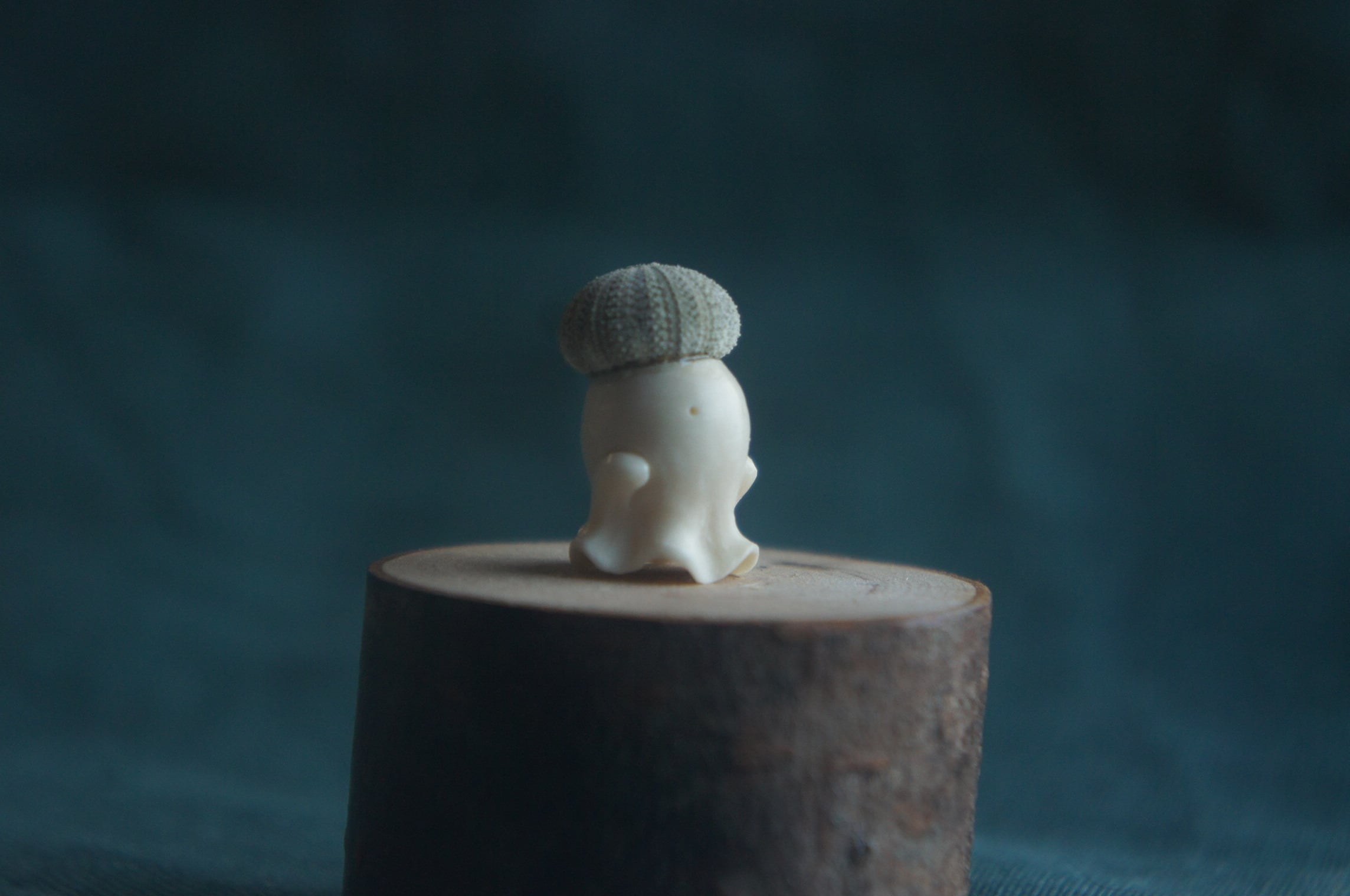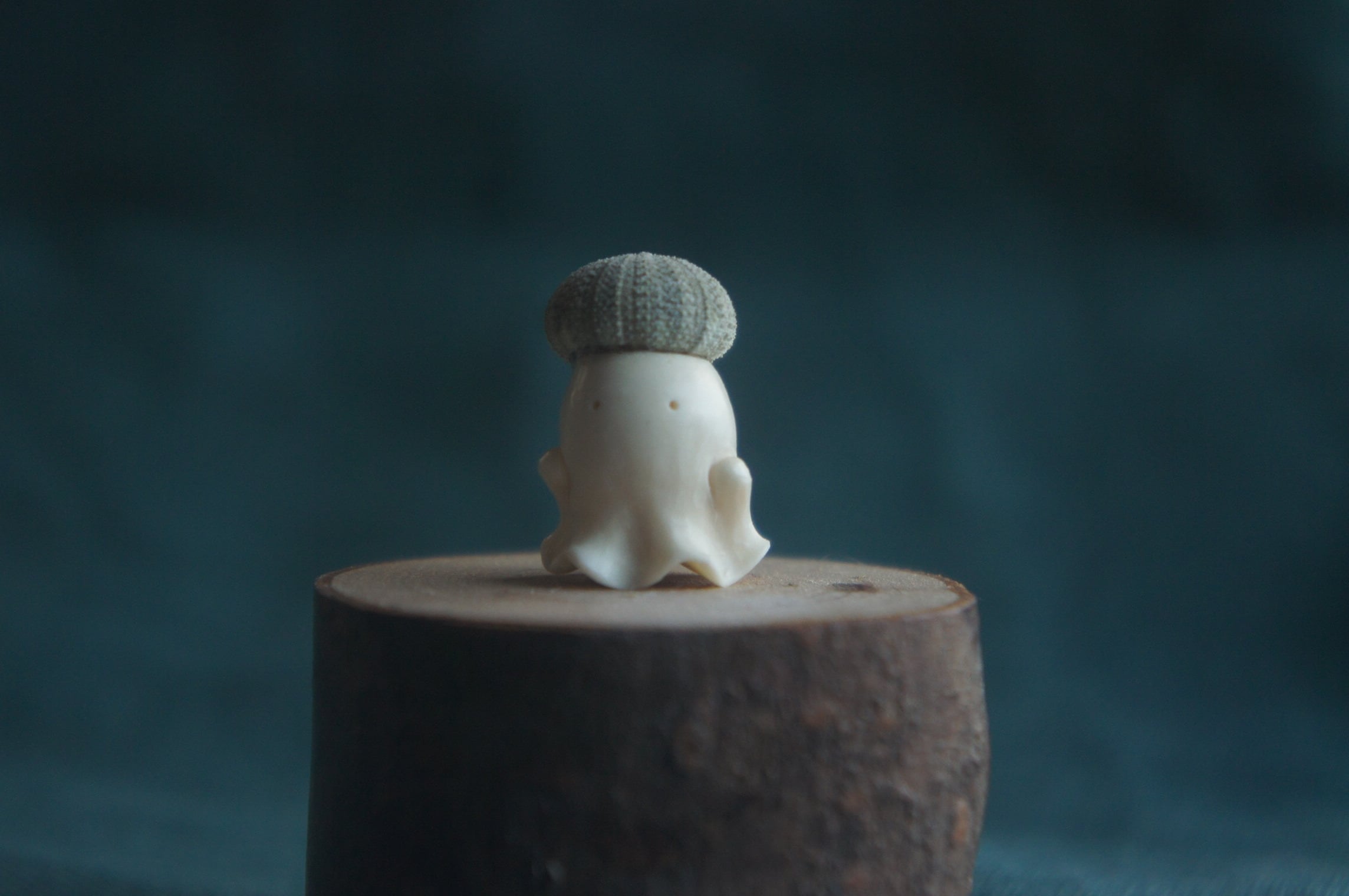 鹿角彫刻「兎角亀毛」うにの帽子をかぶったおばけ【6】