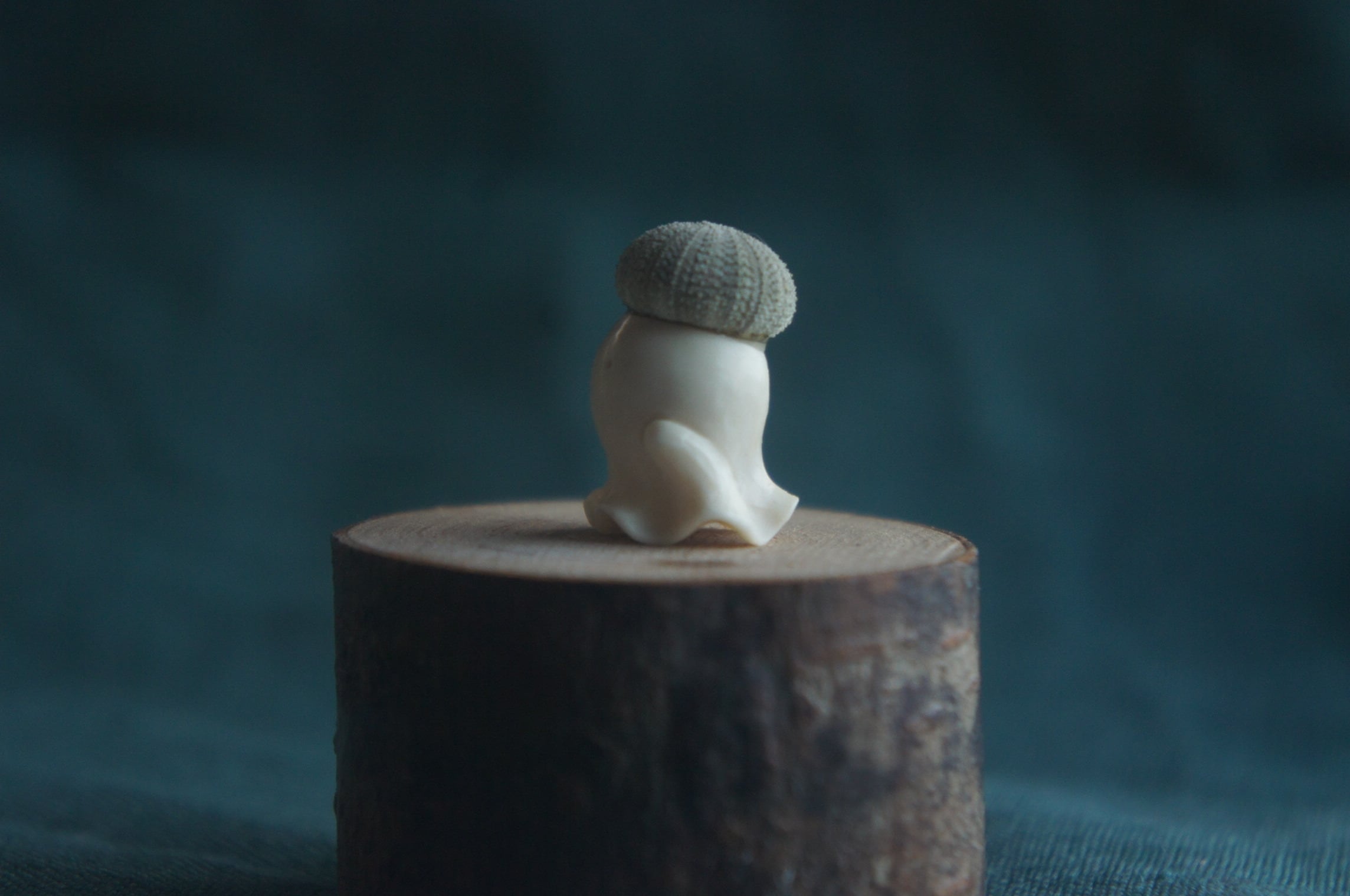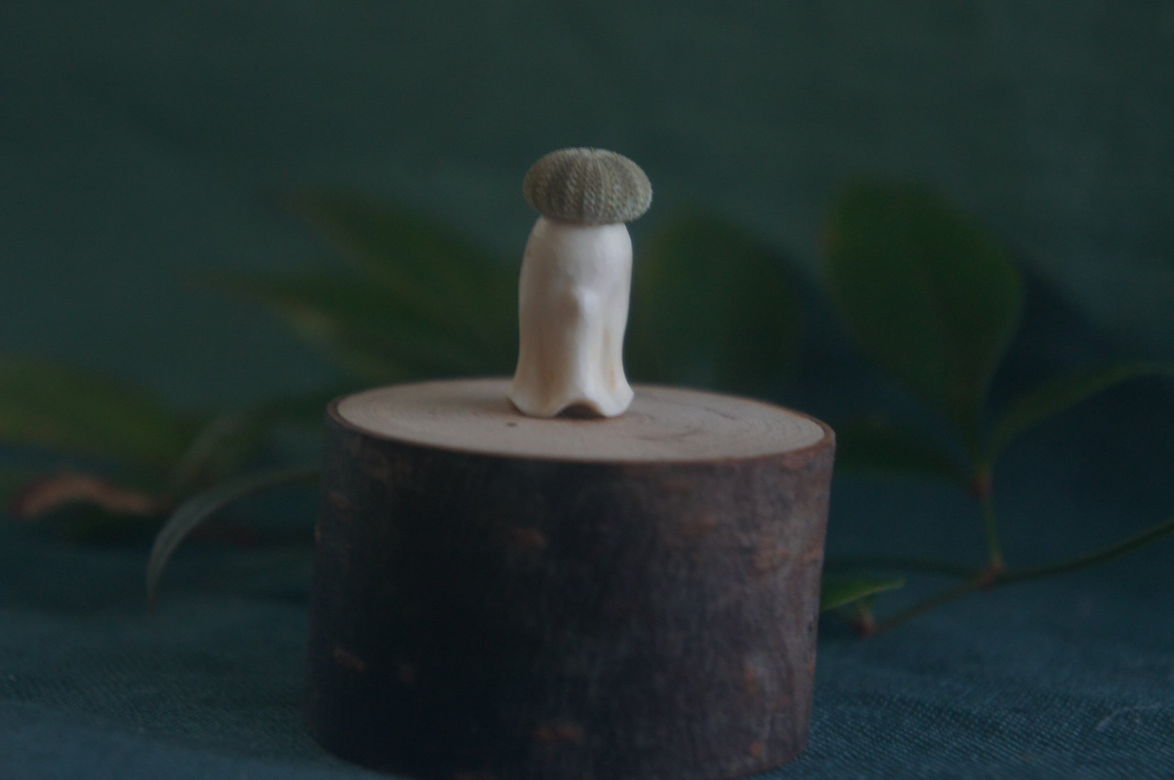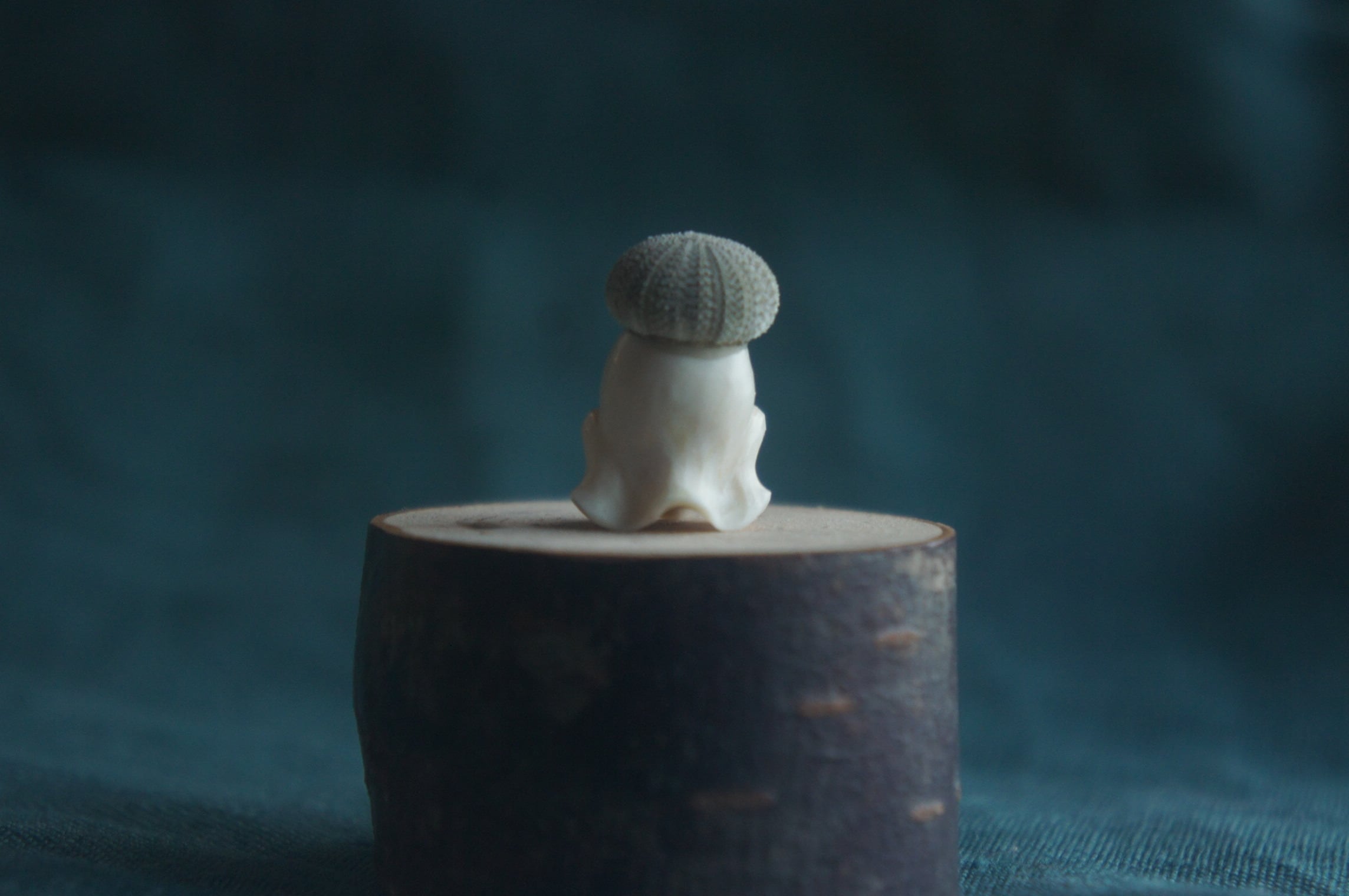 鹿角彫刻「兎角亀毛」うにの帽子をかぶったおばけ【6】