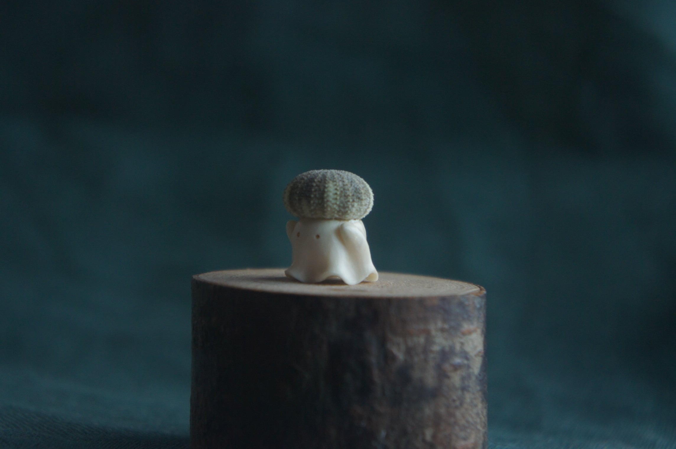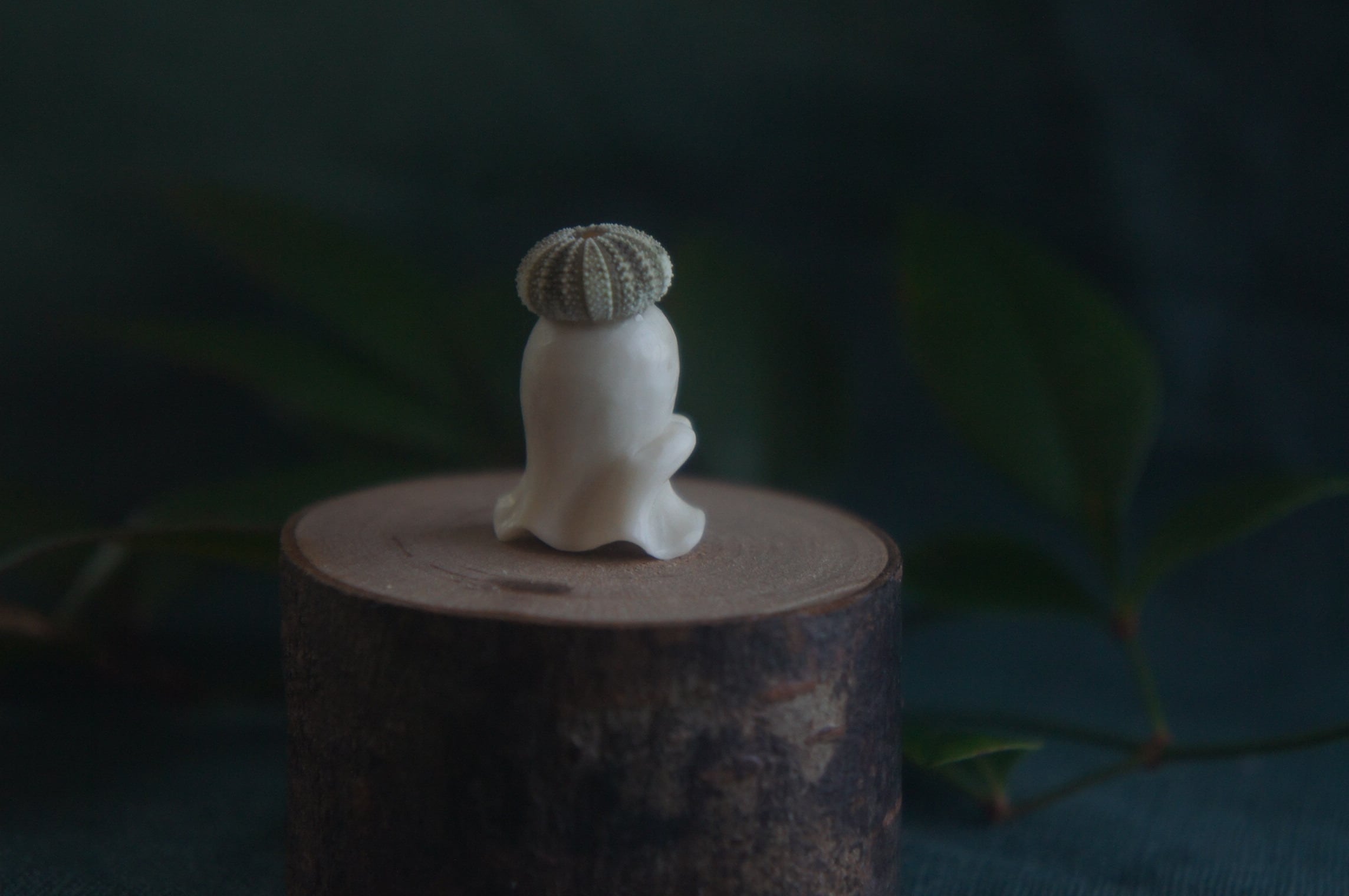 鹿角彫刻「兎角亀毛」うにの帽子をかぶったおばけ【4】