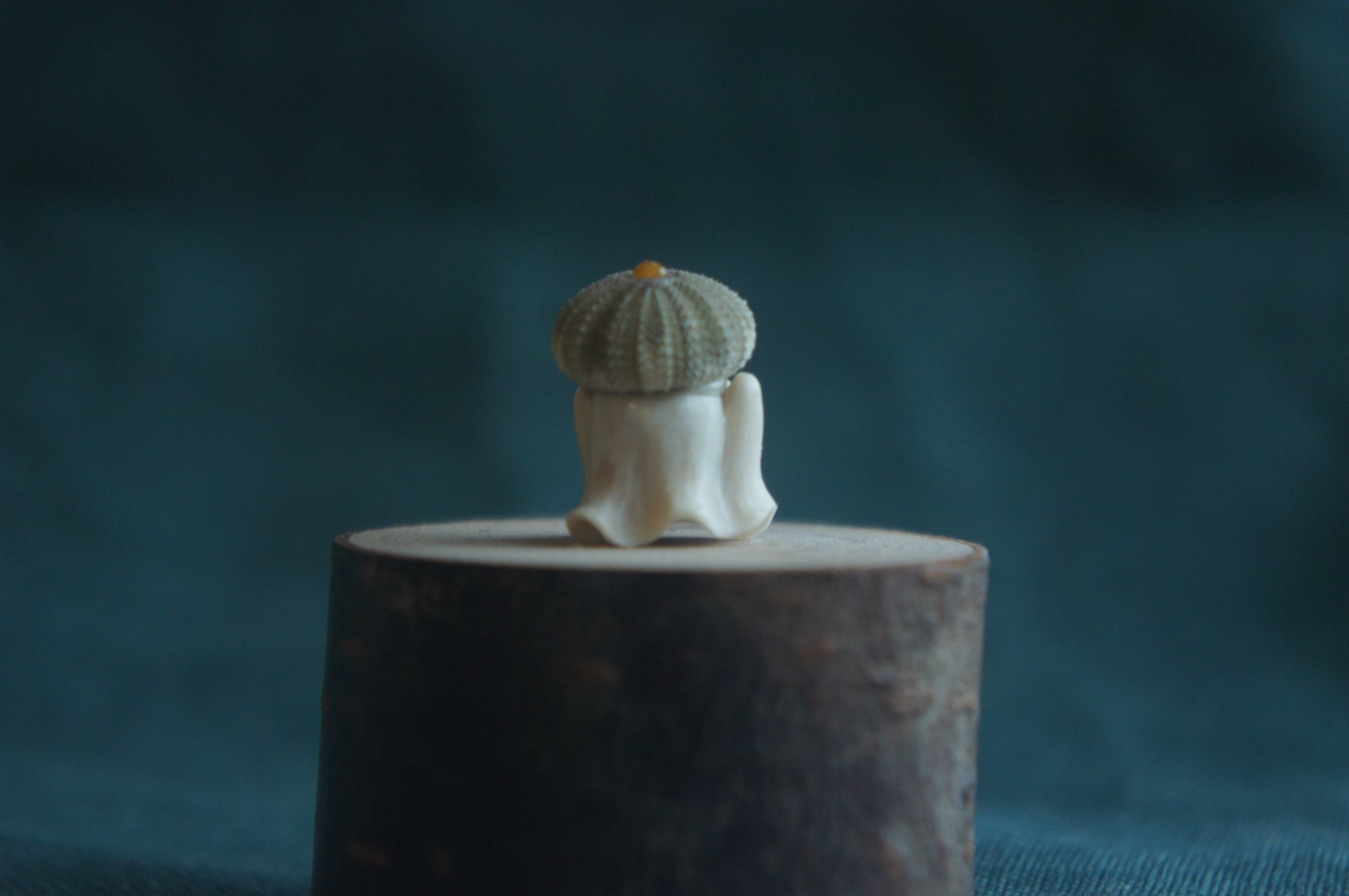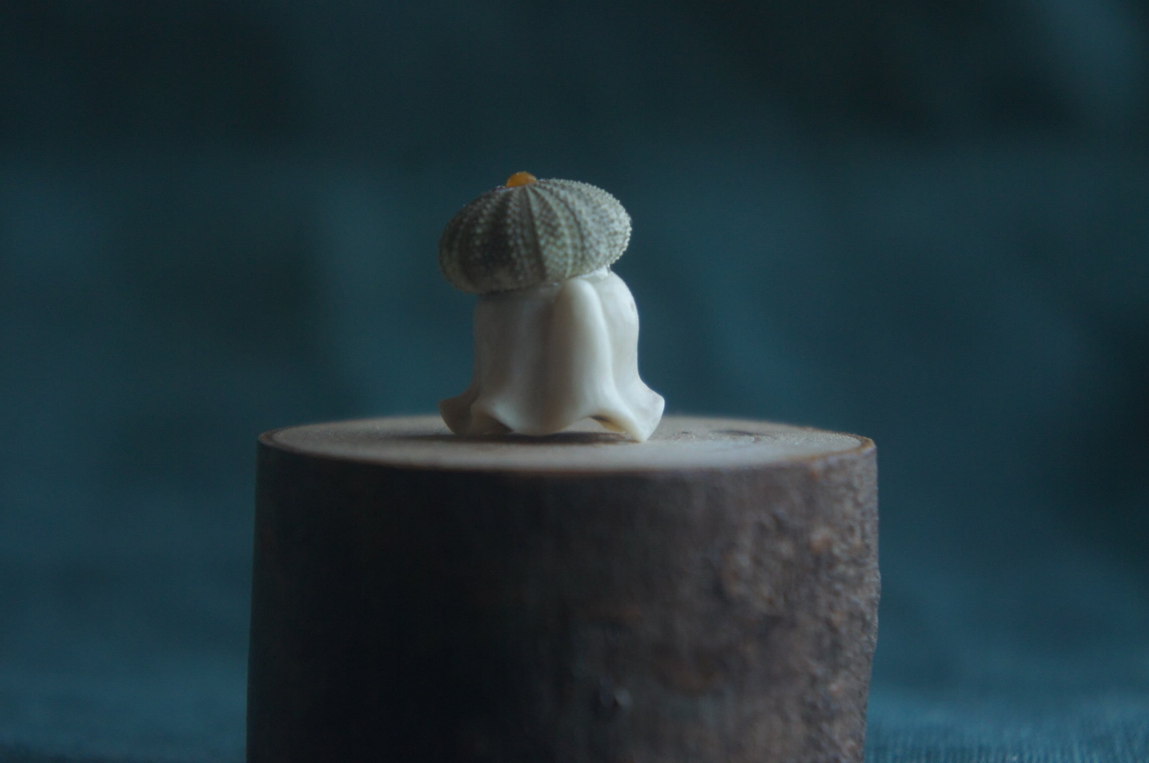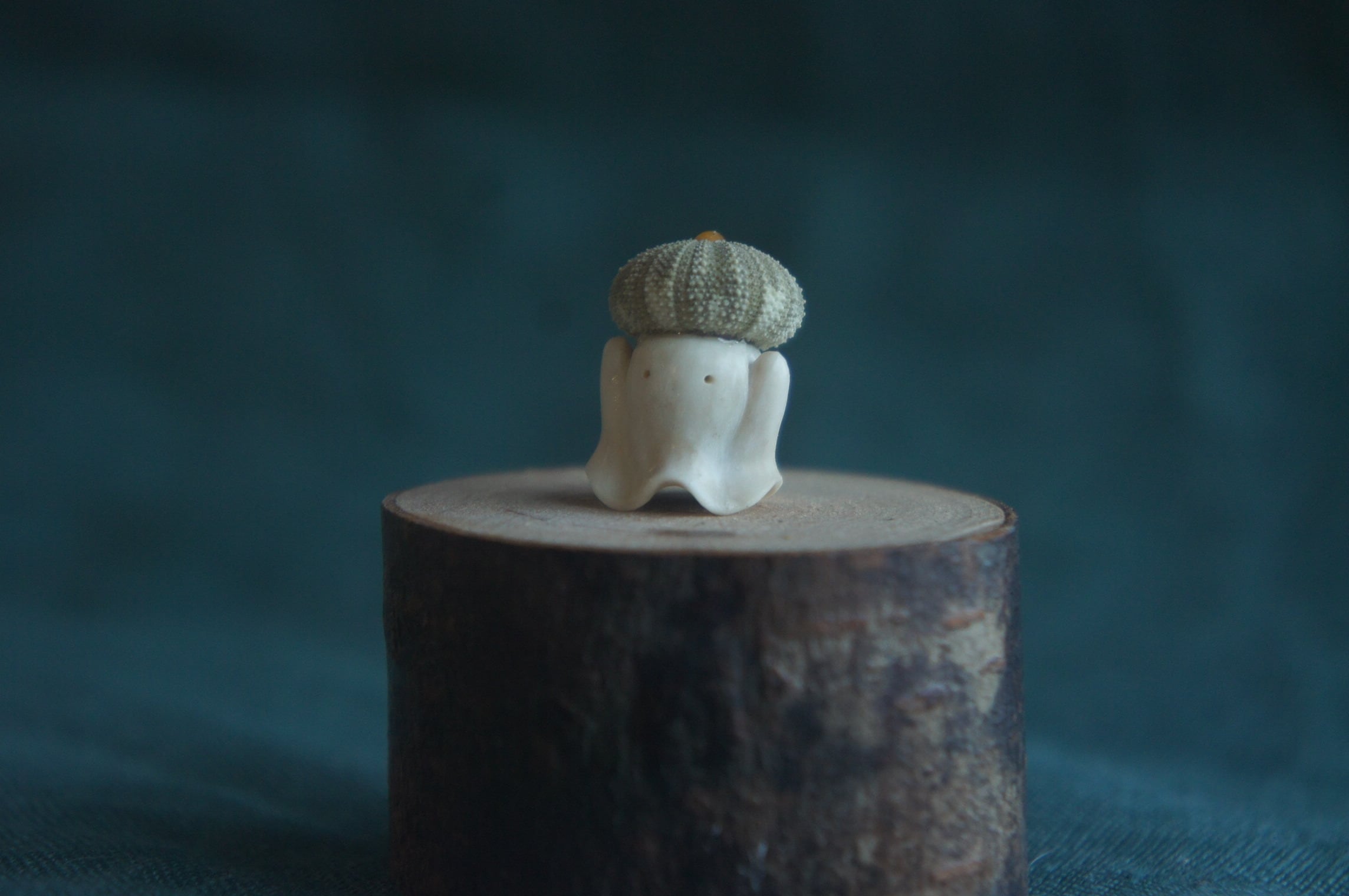 鹿角彫刻「兎角亀毛」うにの帽子をかぶったおばけ【2】