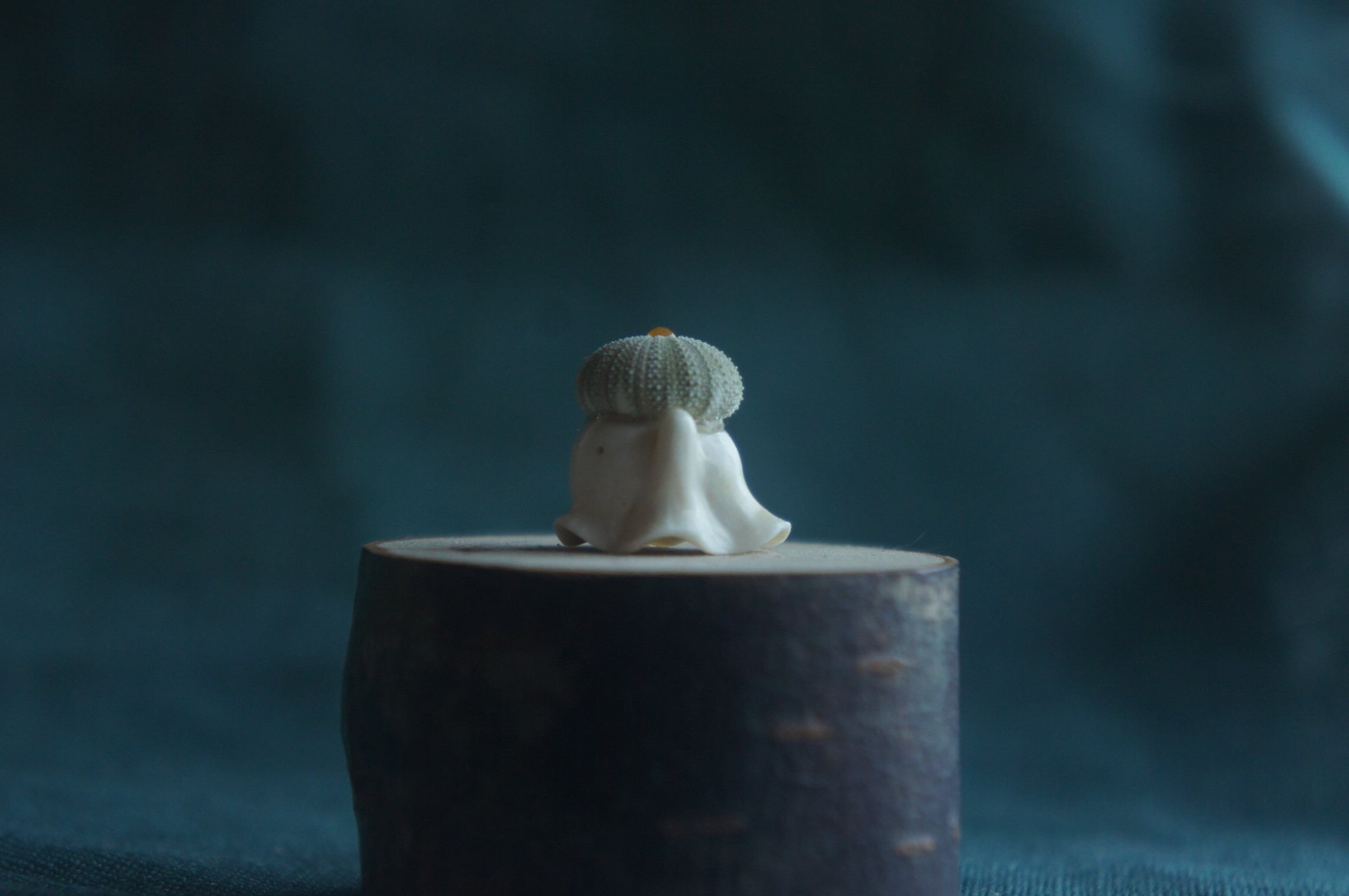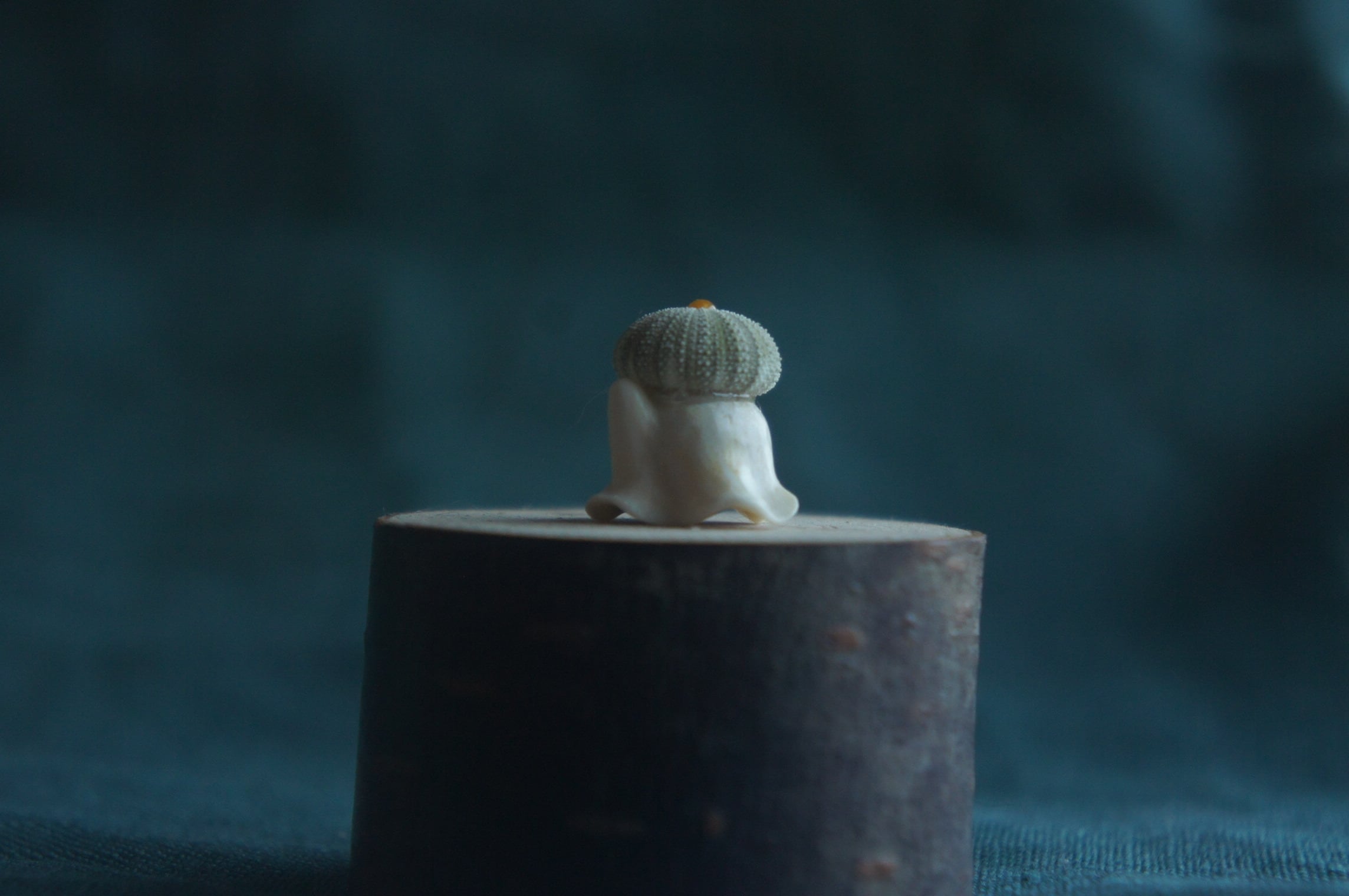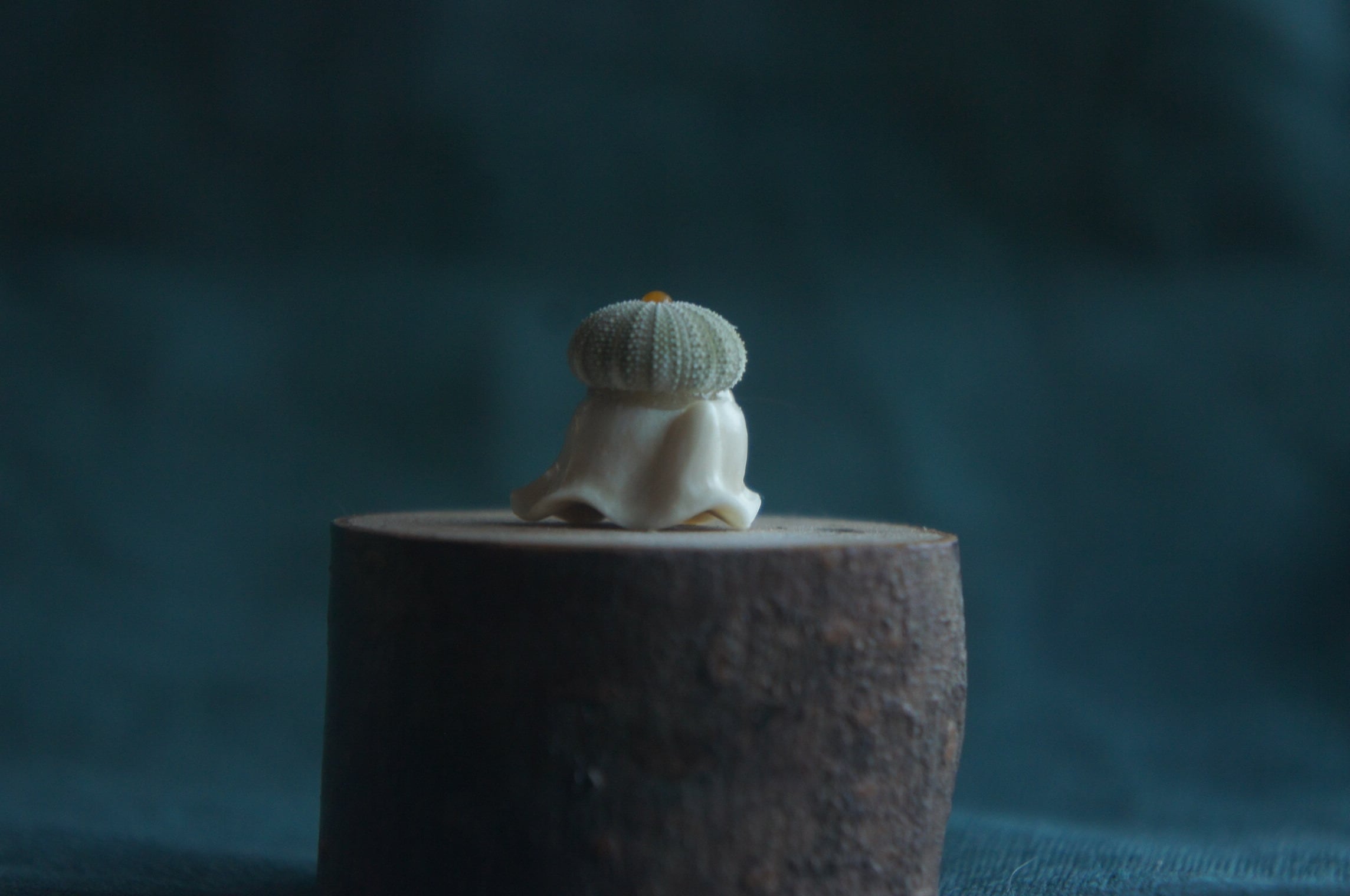 小さなウニの殻は福井県の砂浜で採集したものを使っています。