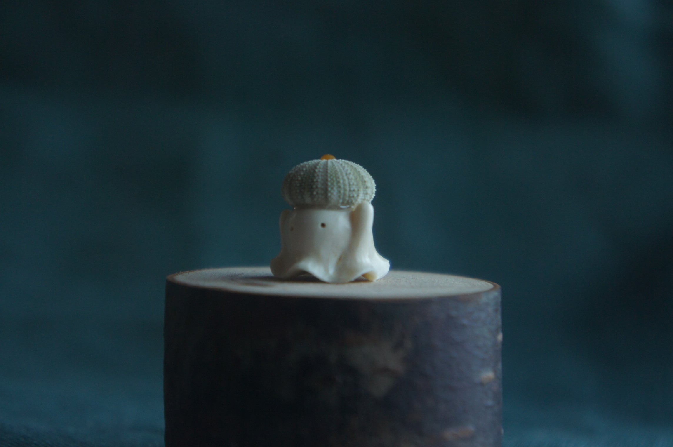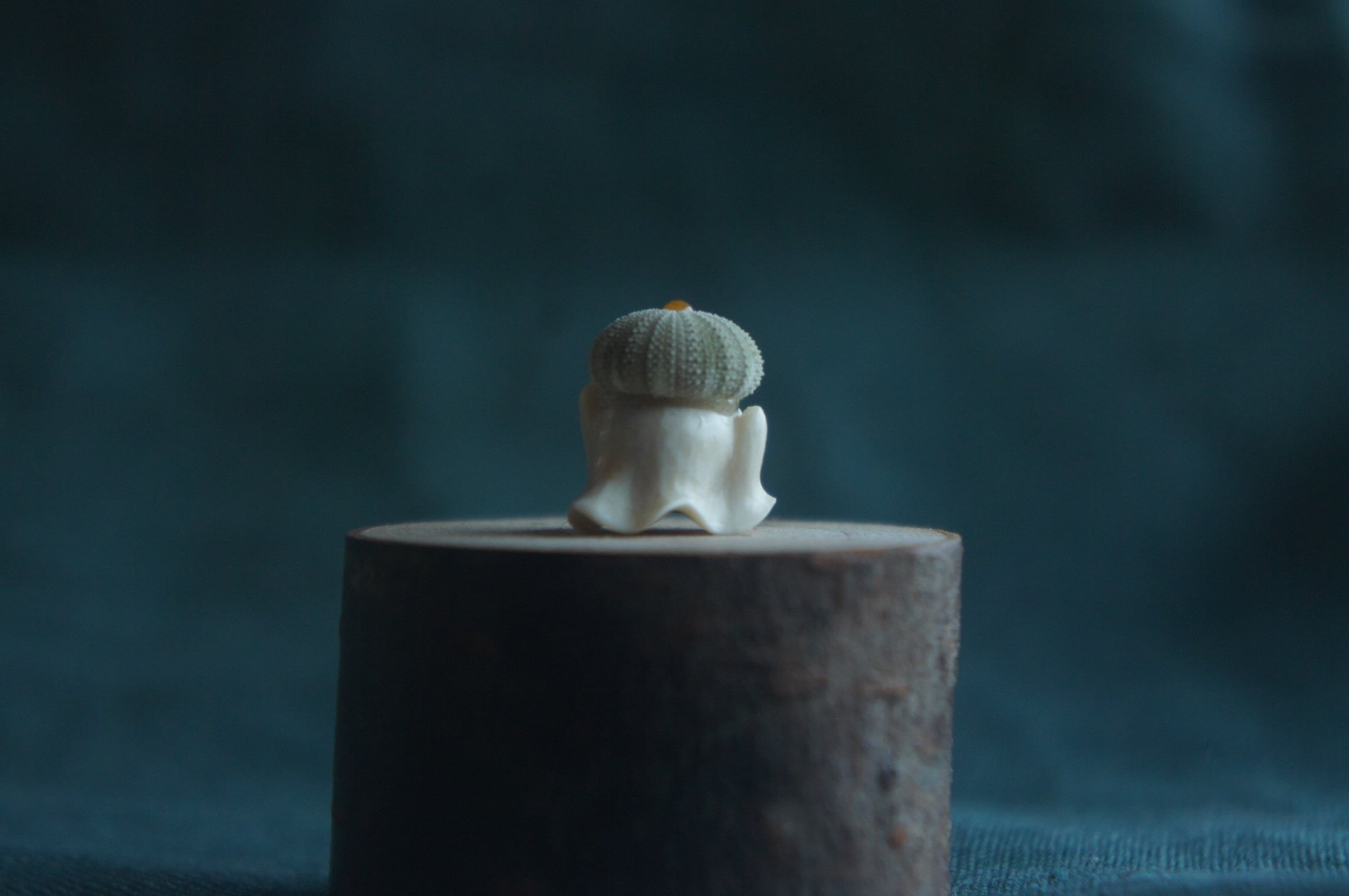 鹿角彫刻「兎角亀毛」うにの帽子をかぶったおばけ【1】