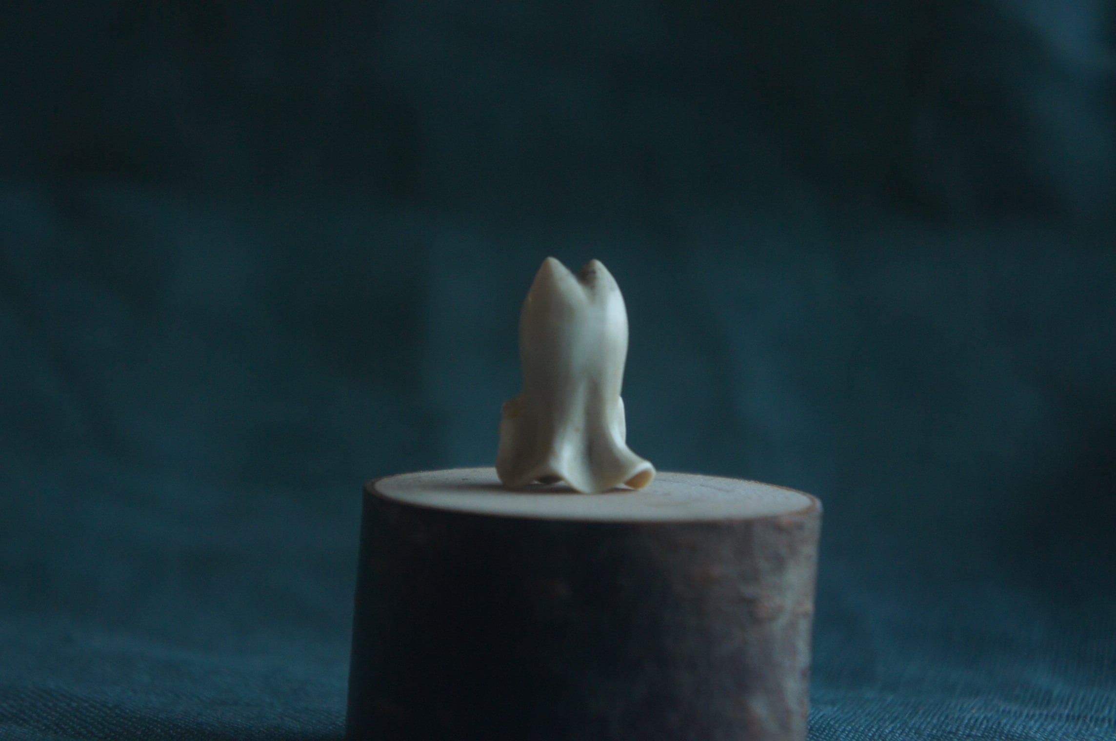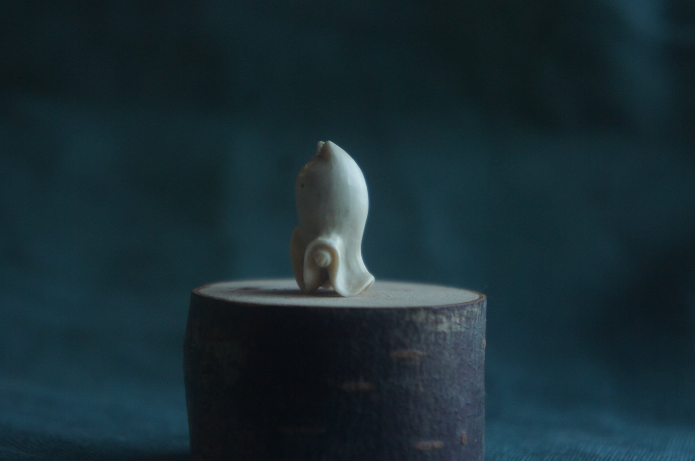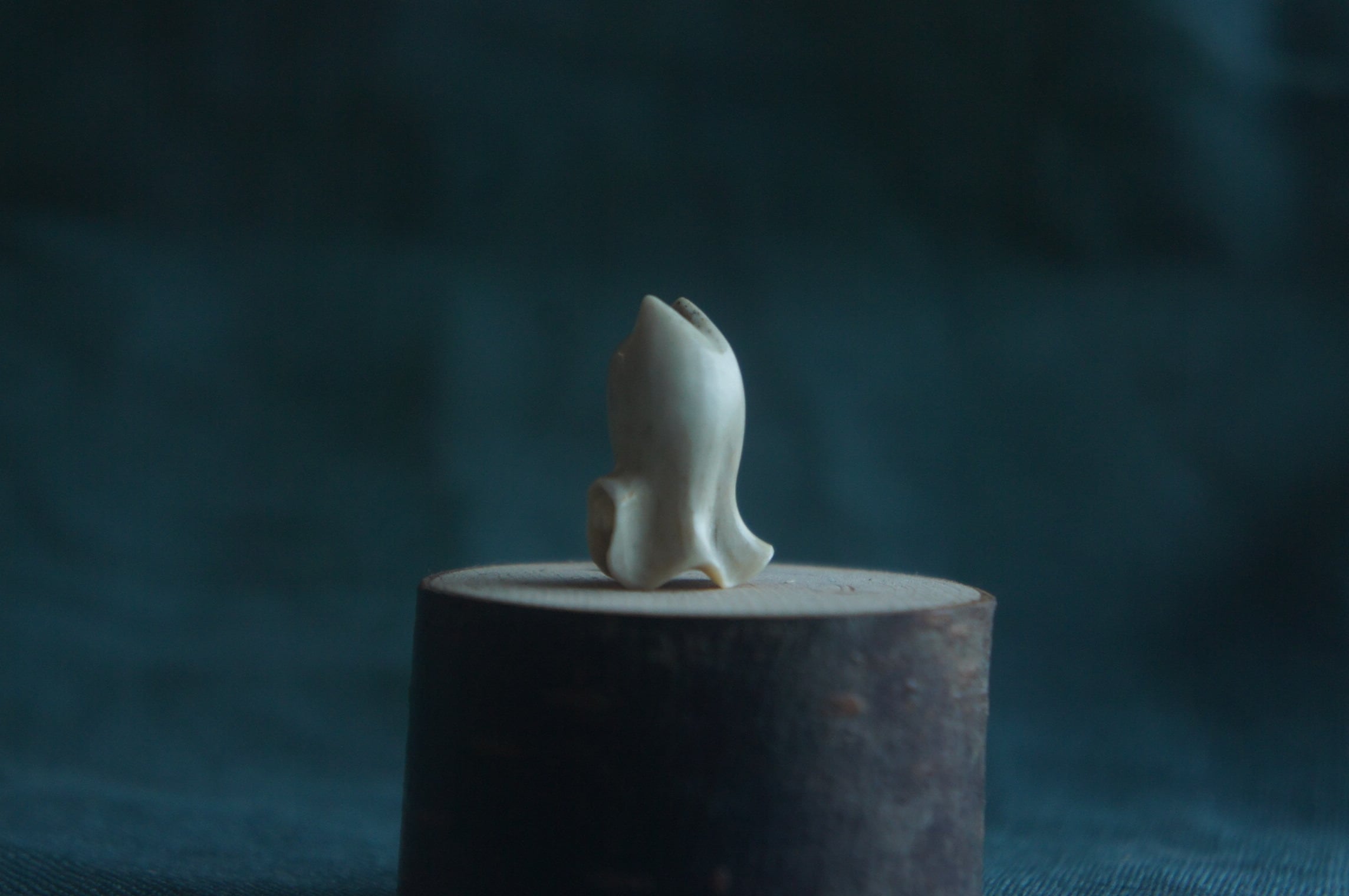 鹿の角から彫刻した、指先ほどの小さなおばけ。