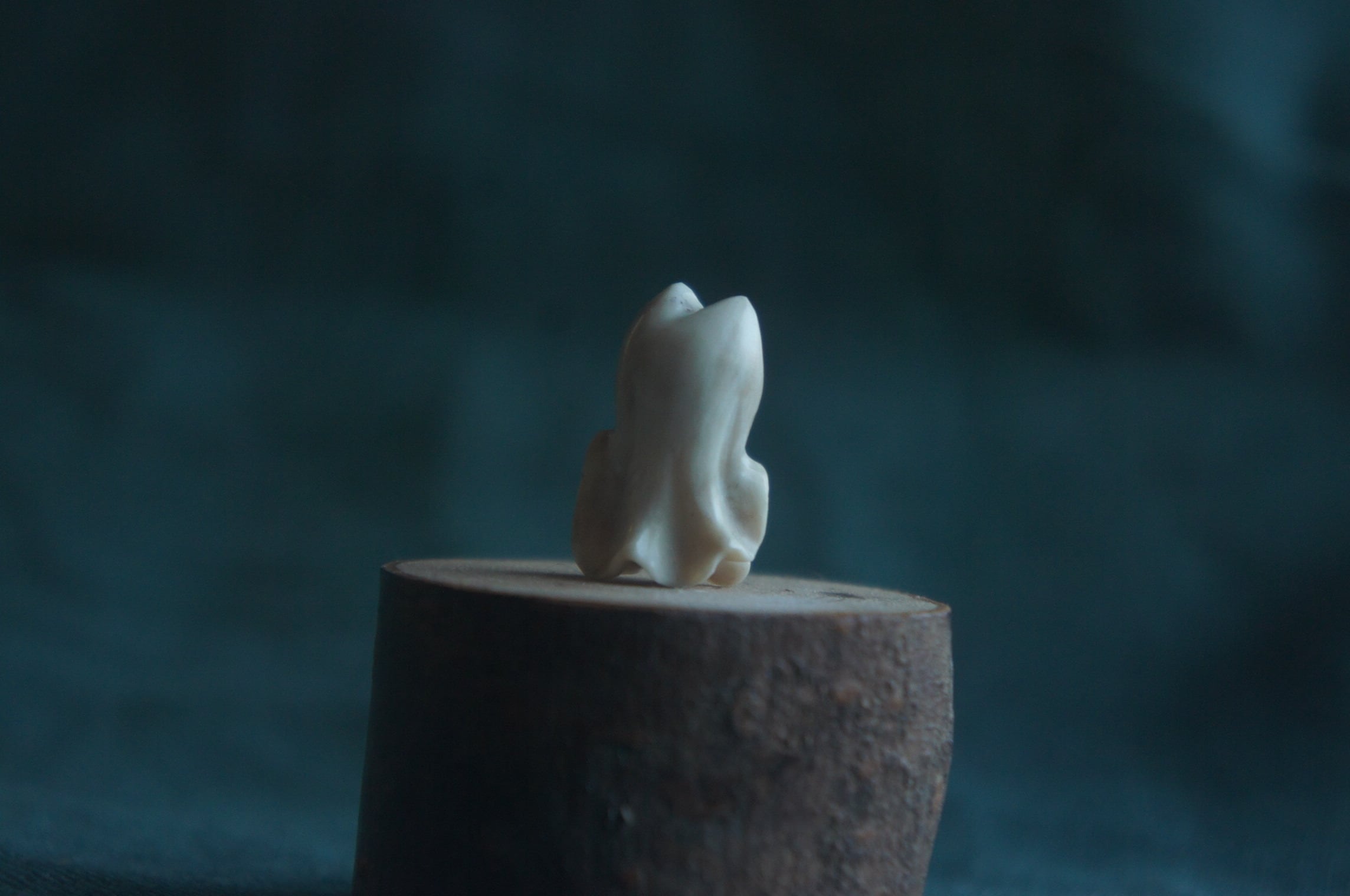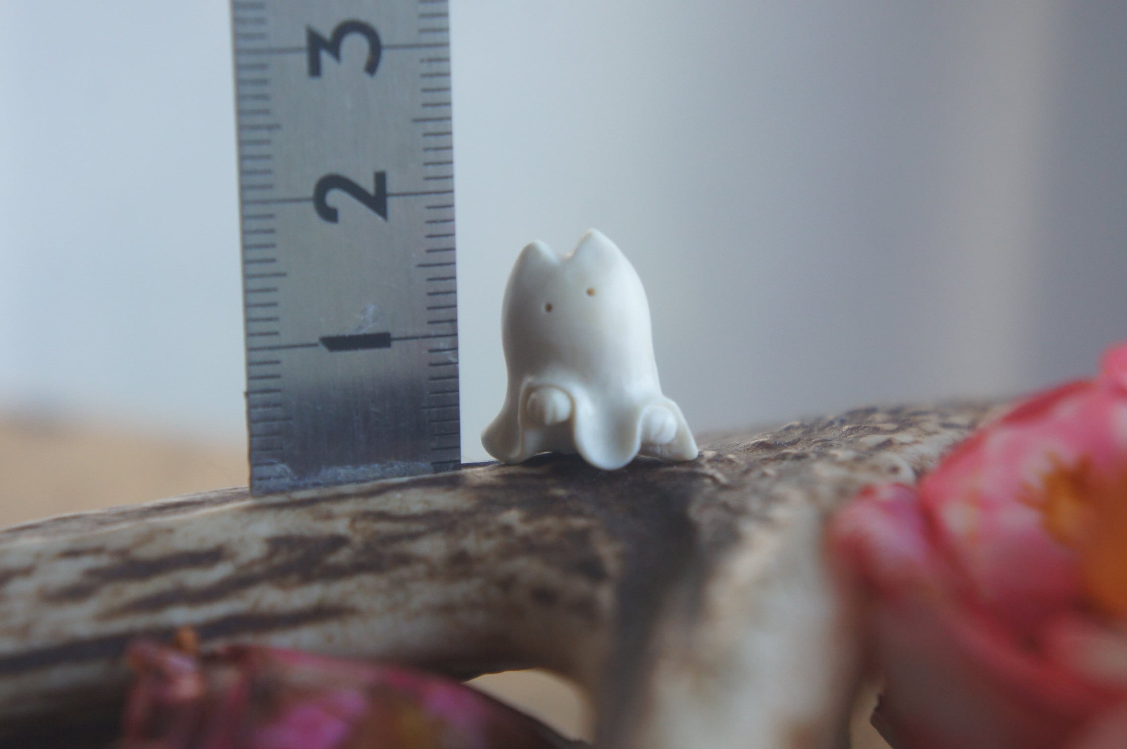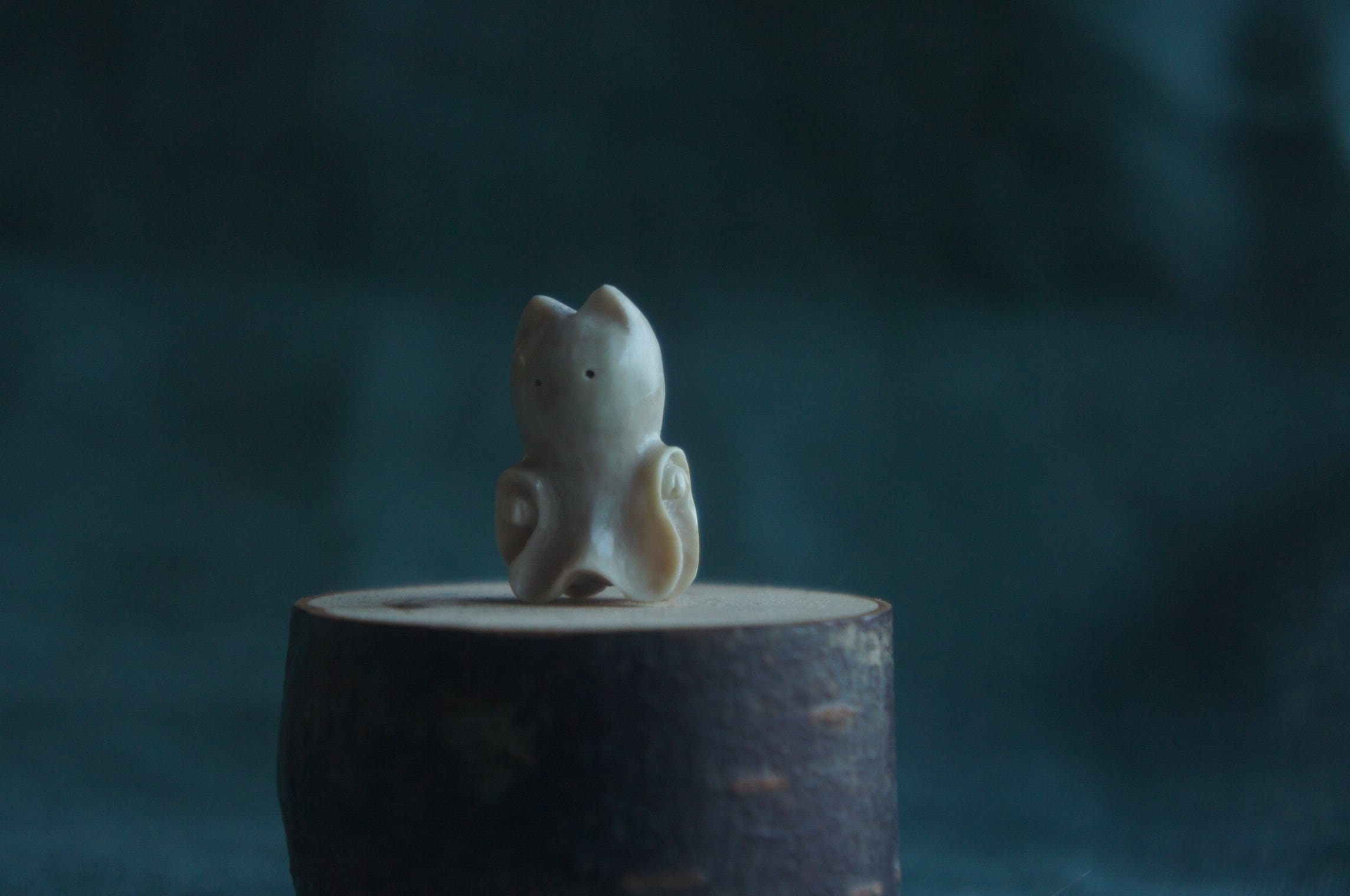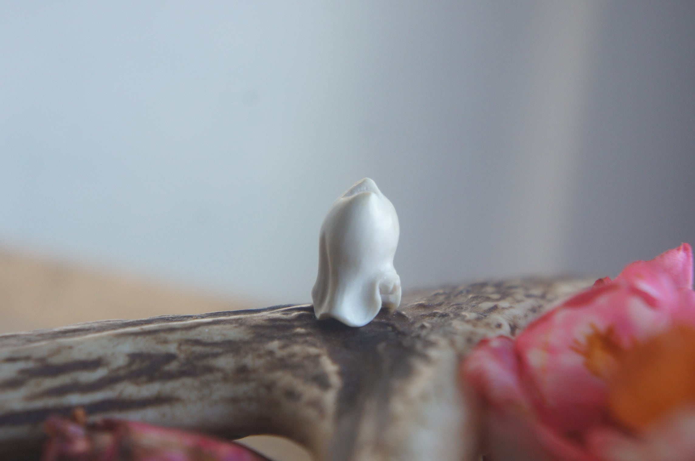 鹿の角から彫刻した、指先ほどの小さなおばけ。