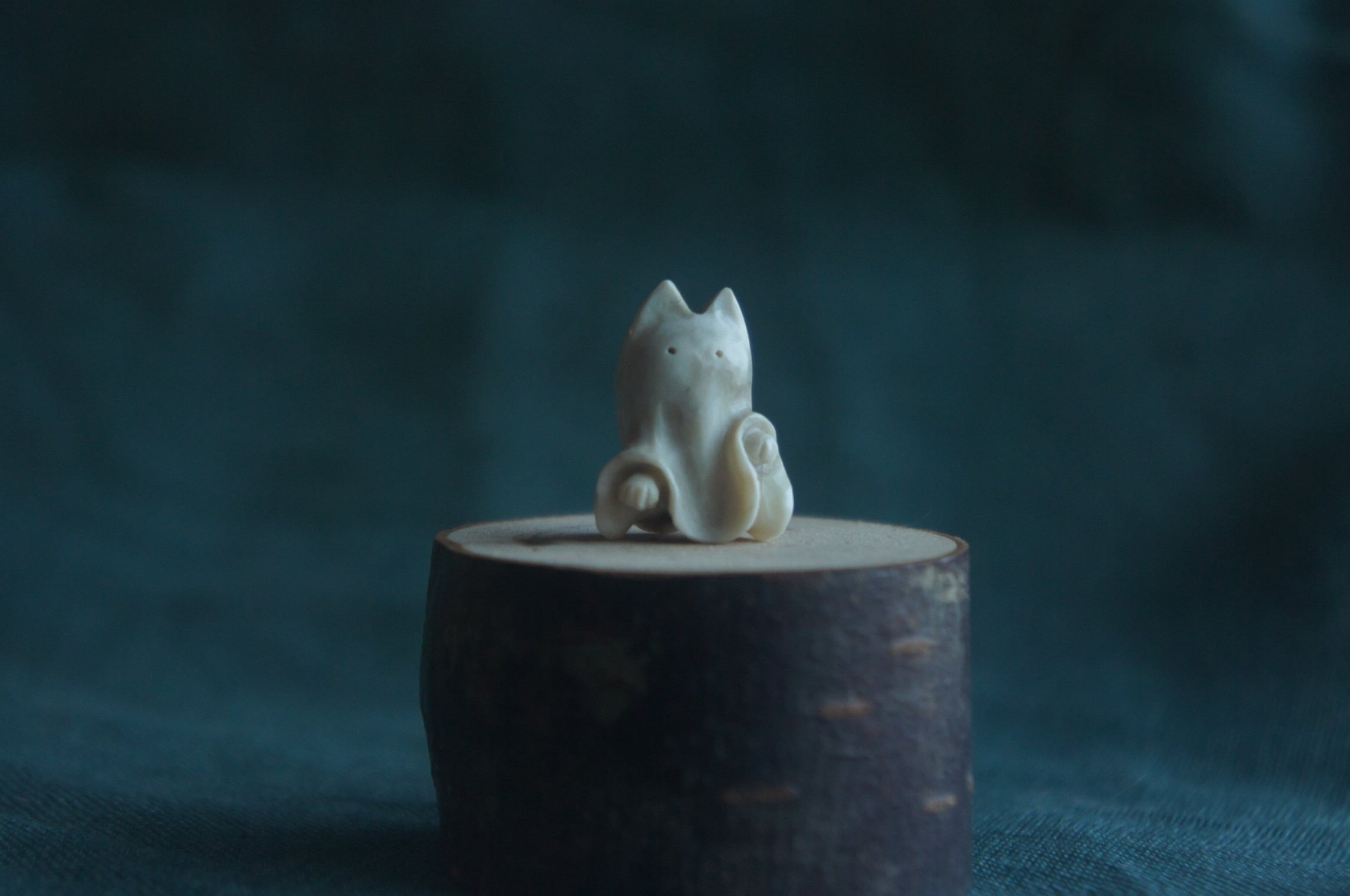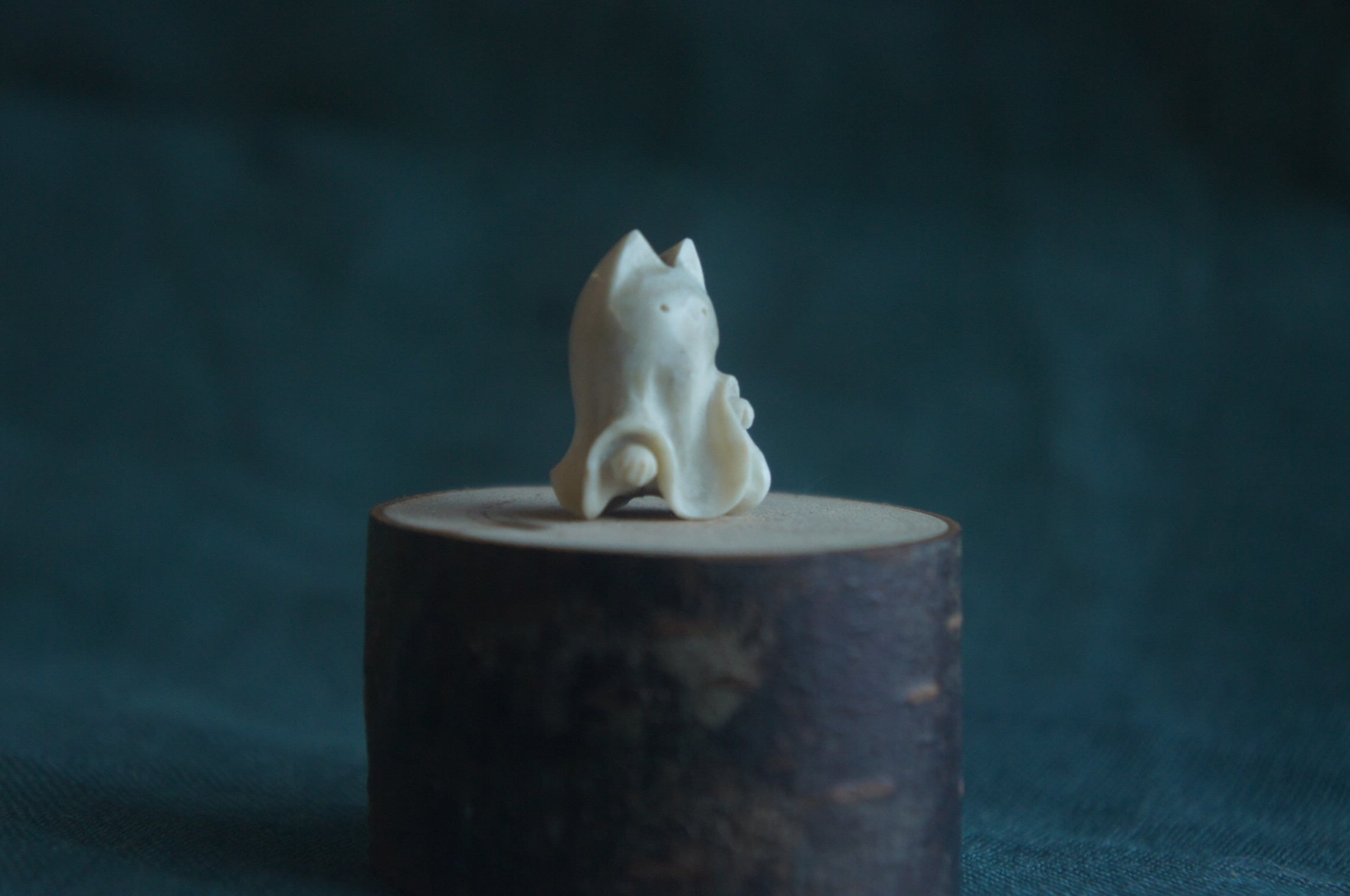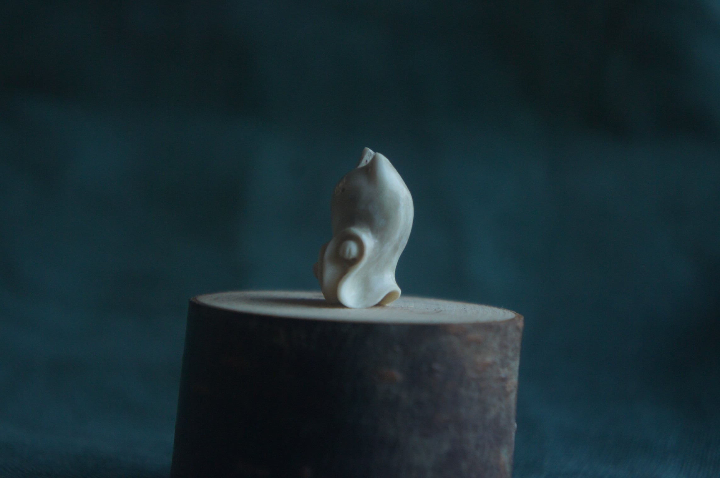 鹿の角から彫刻した、指先ほどの小さなおばけ。