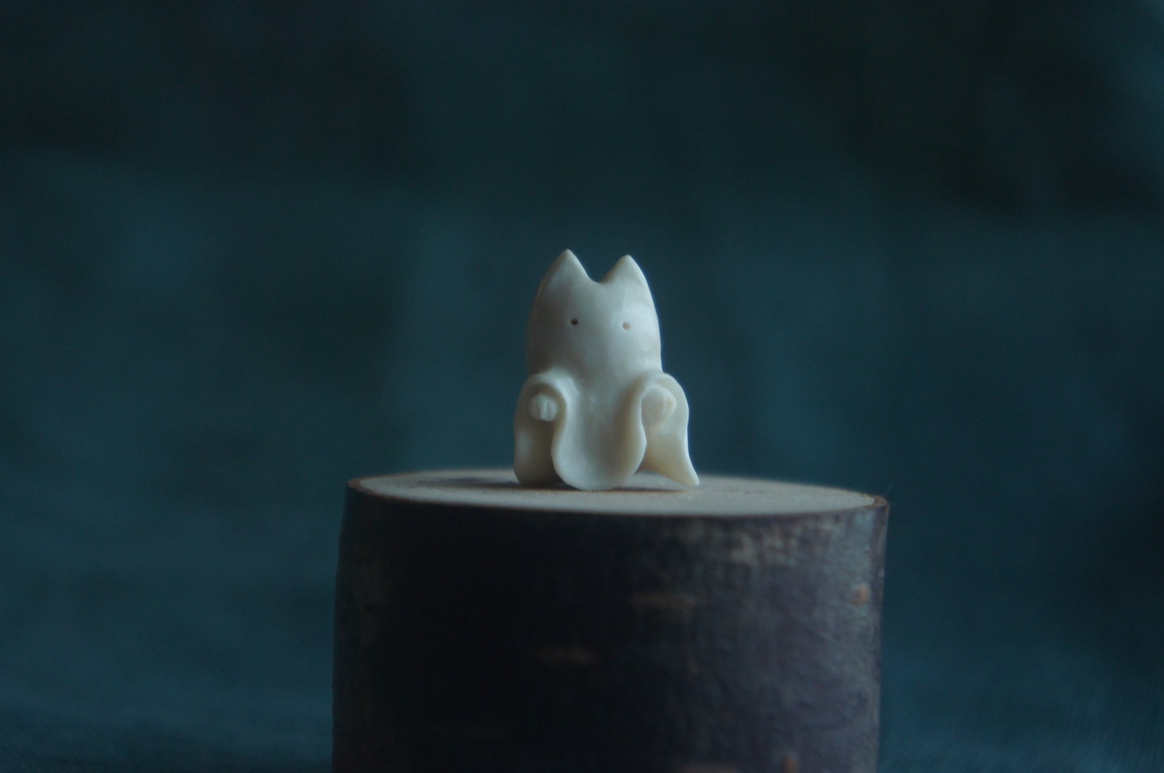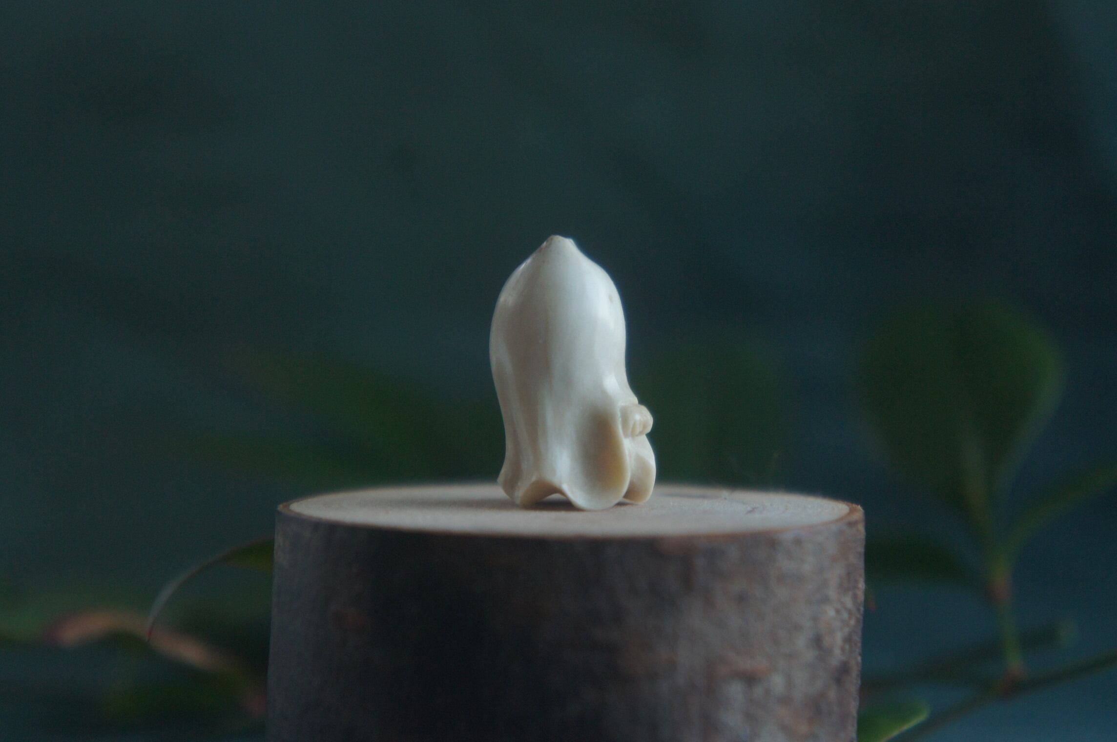 鹿の角から彫刻した、指先ほどの小さなおばけ。