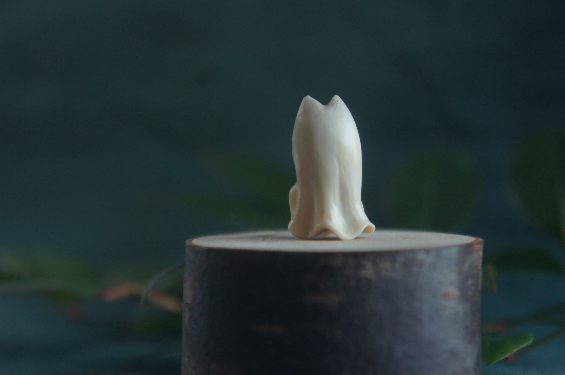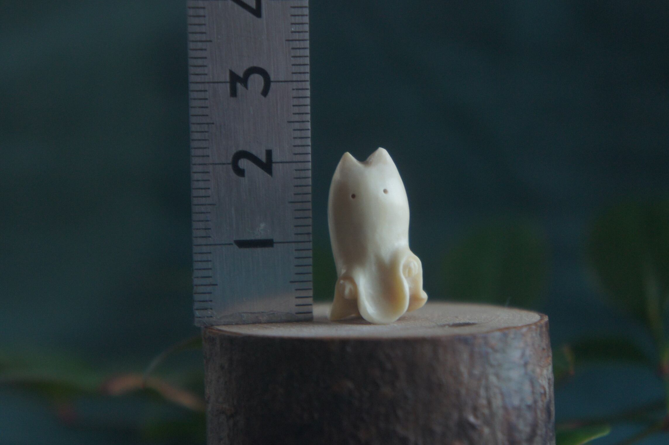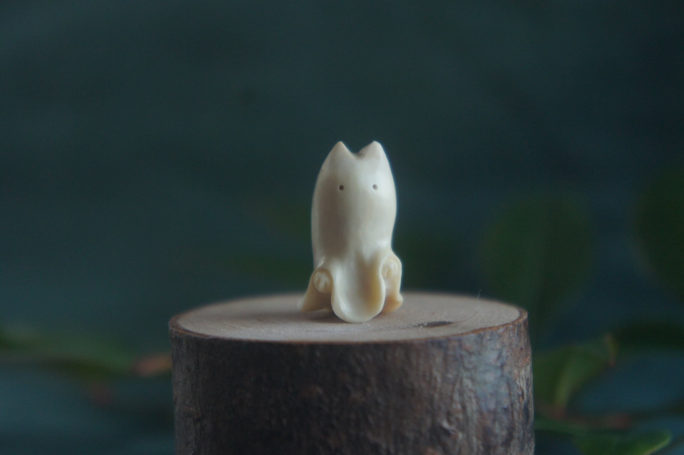 鹿の角から彫刻した、指先ほどの小さなおばけ。