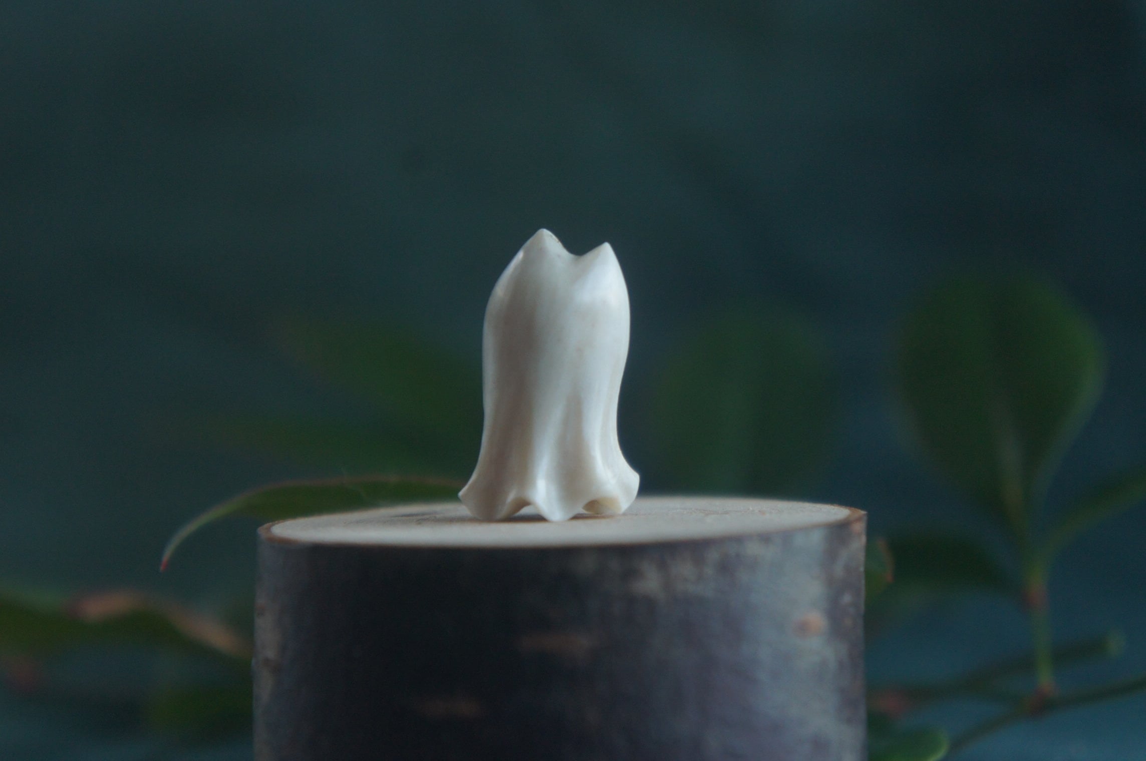 鹿の角から彫刻した、指先ほどの小さなおばけ。
