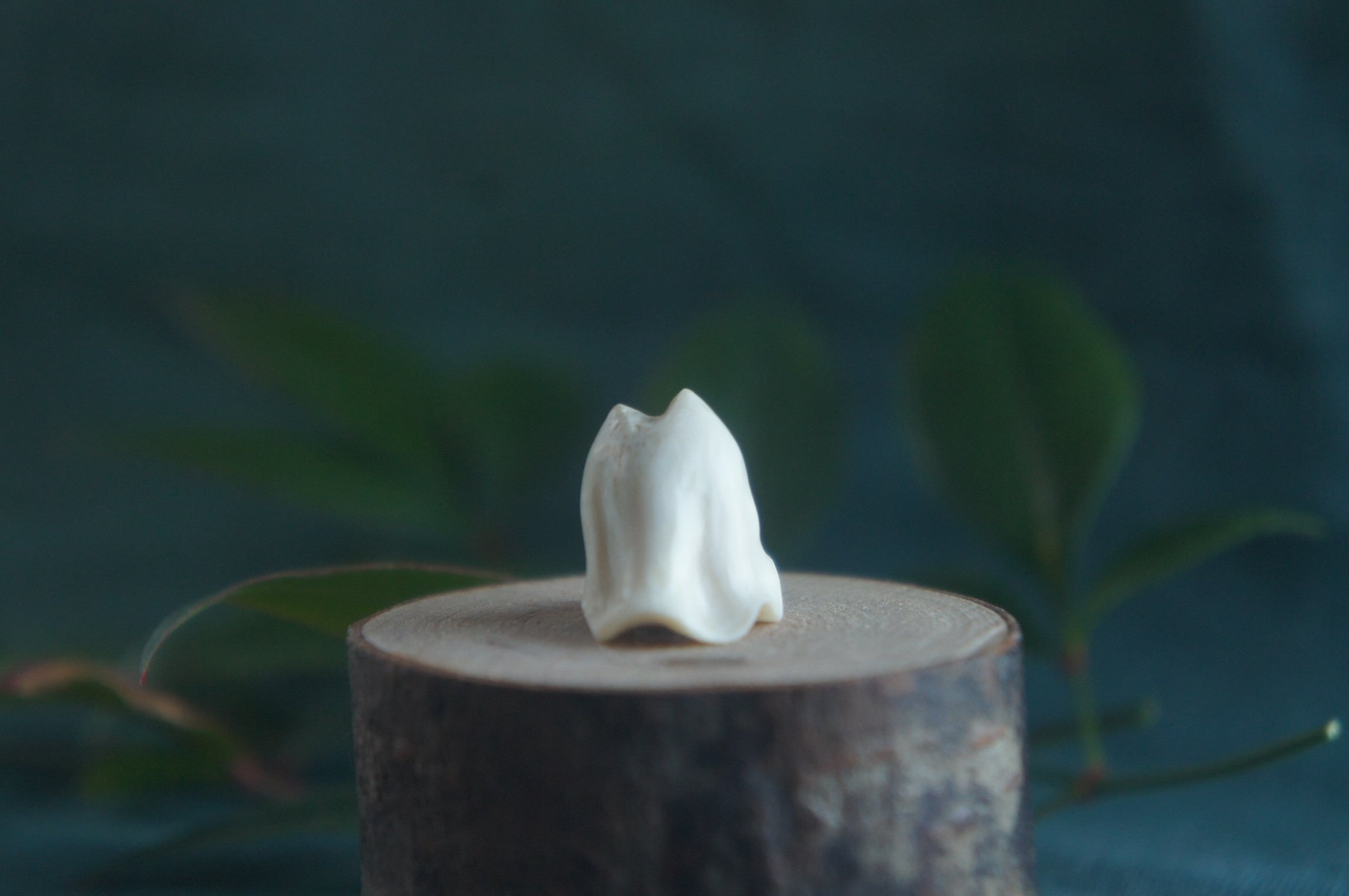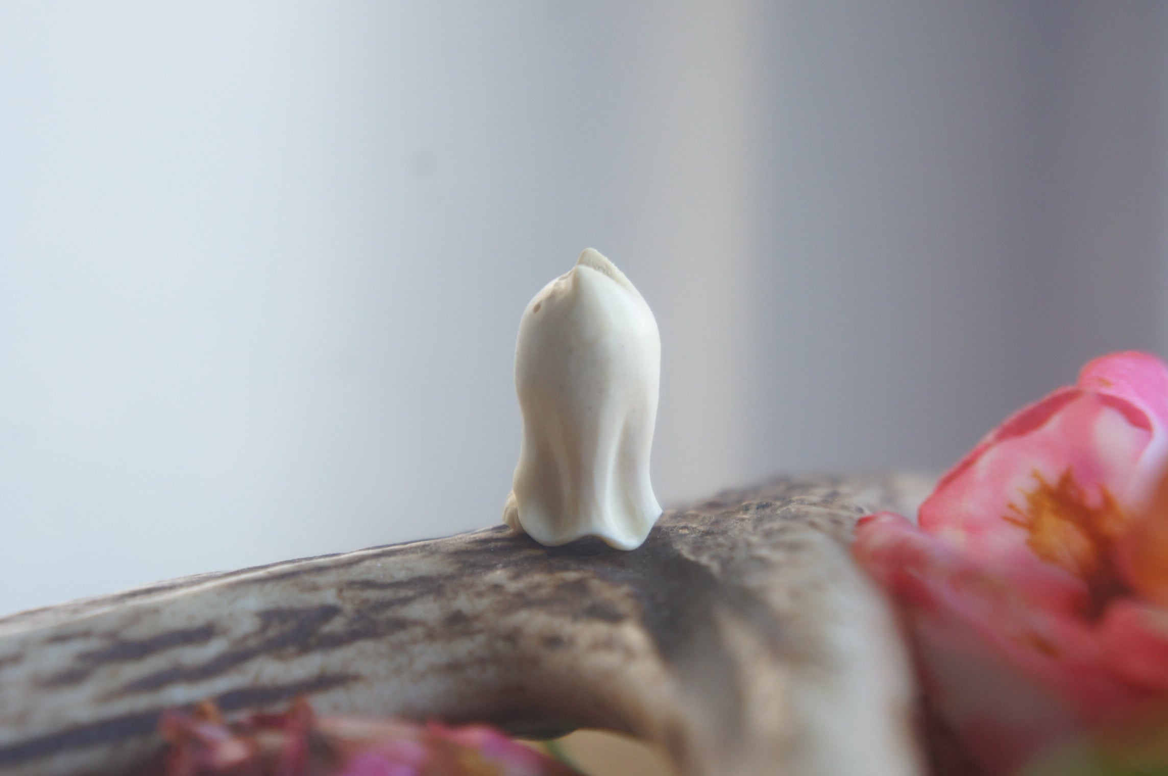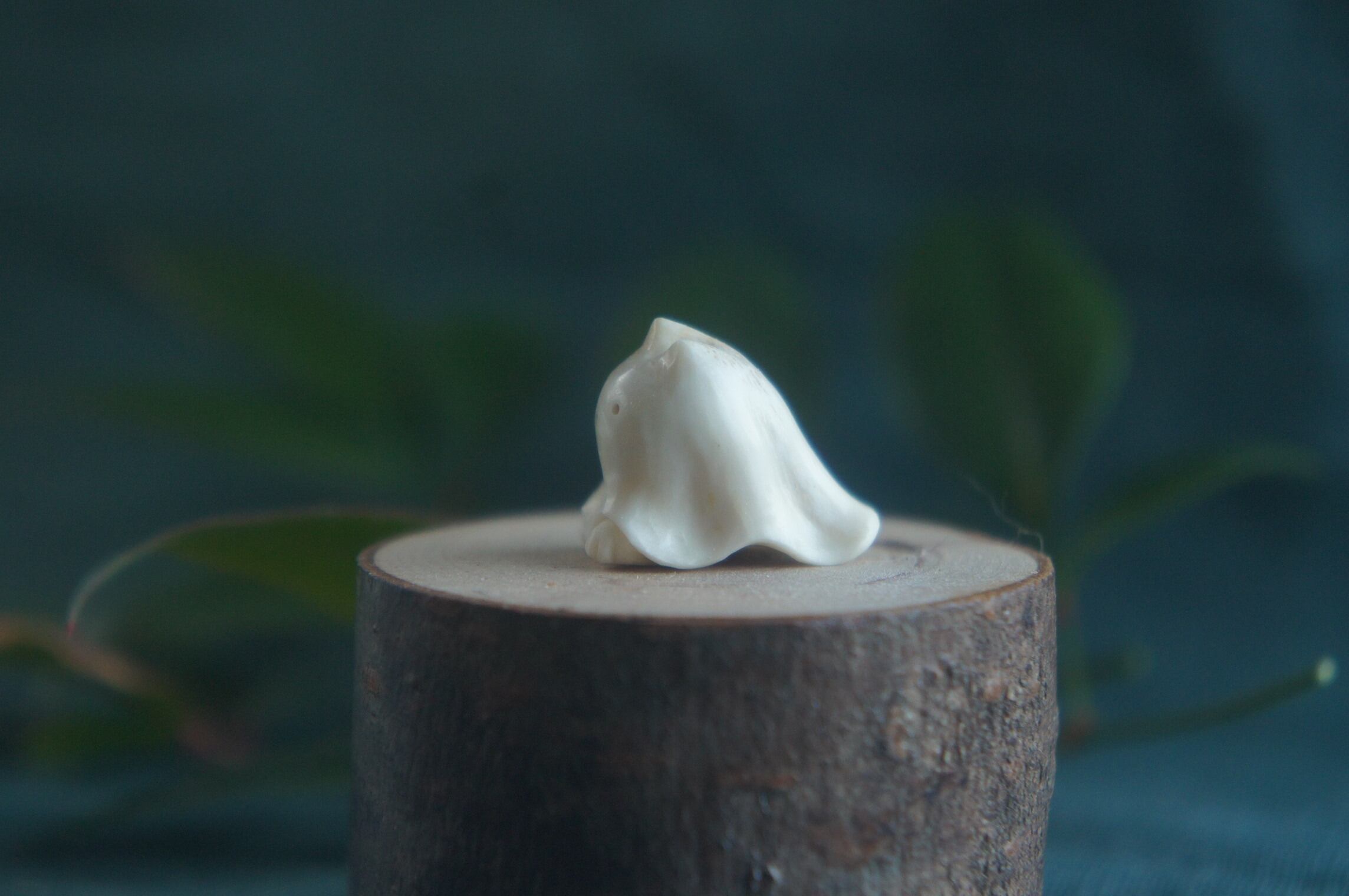 鹿の角から彫刻した、指先ほどの小さなおばけ。