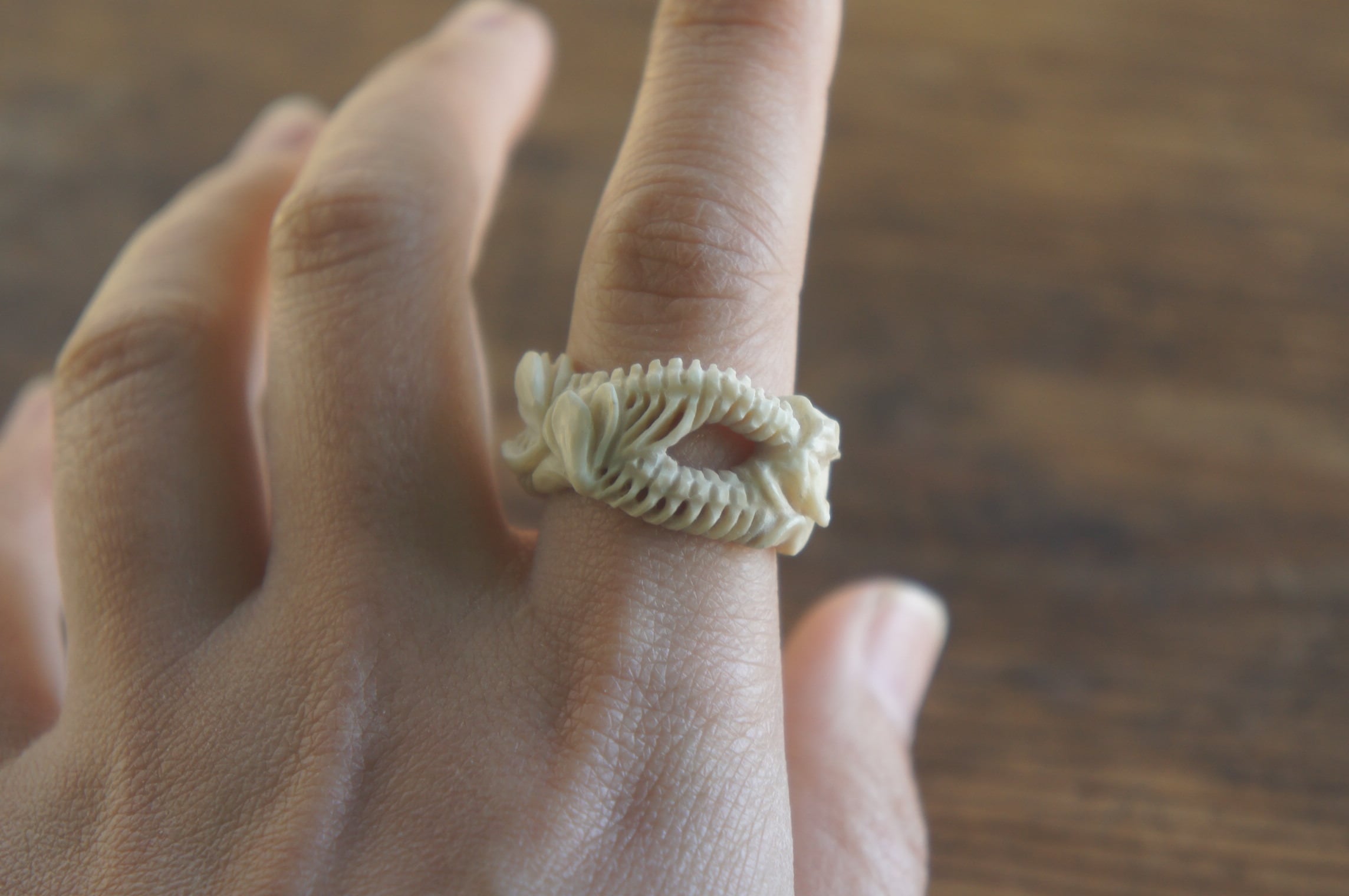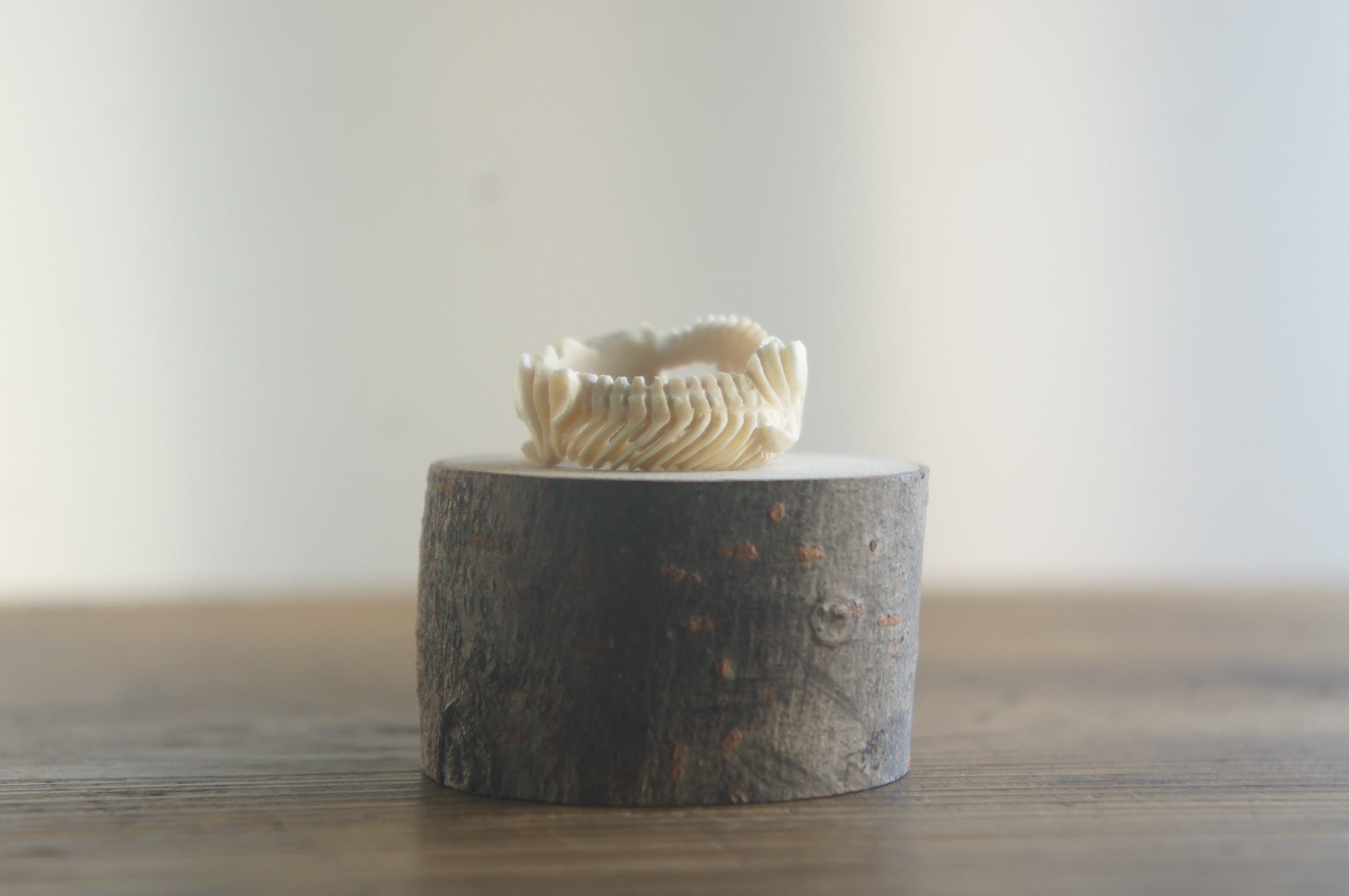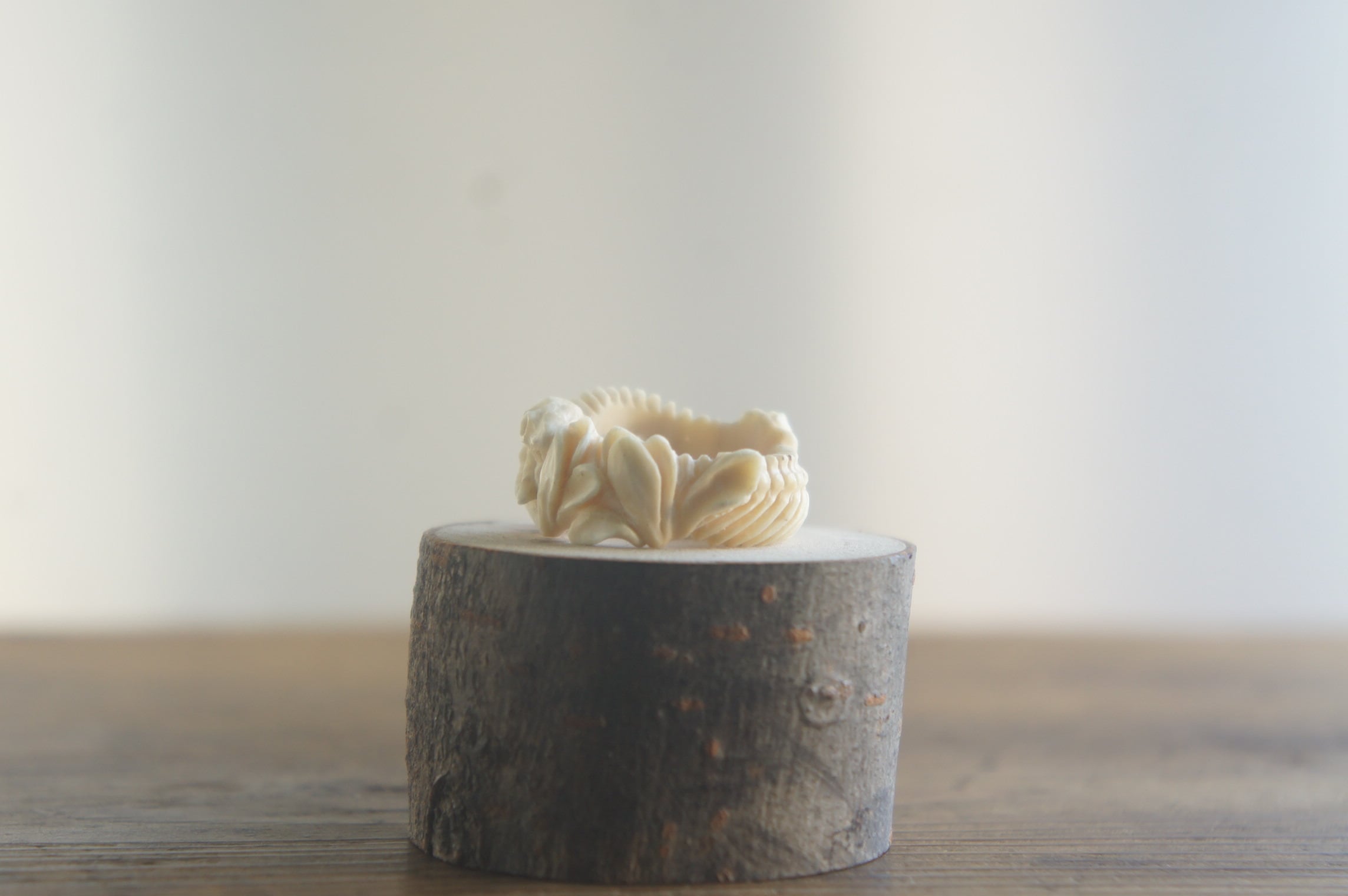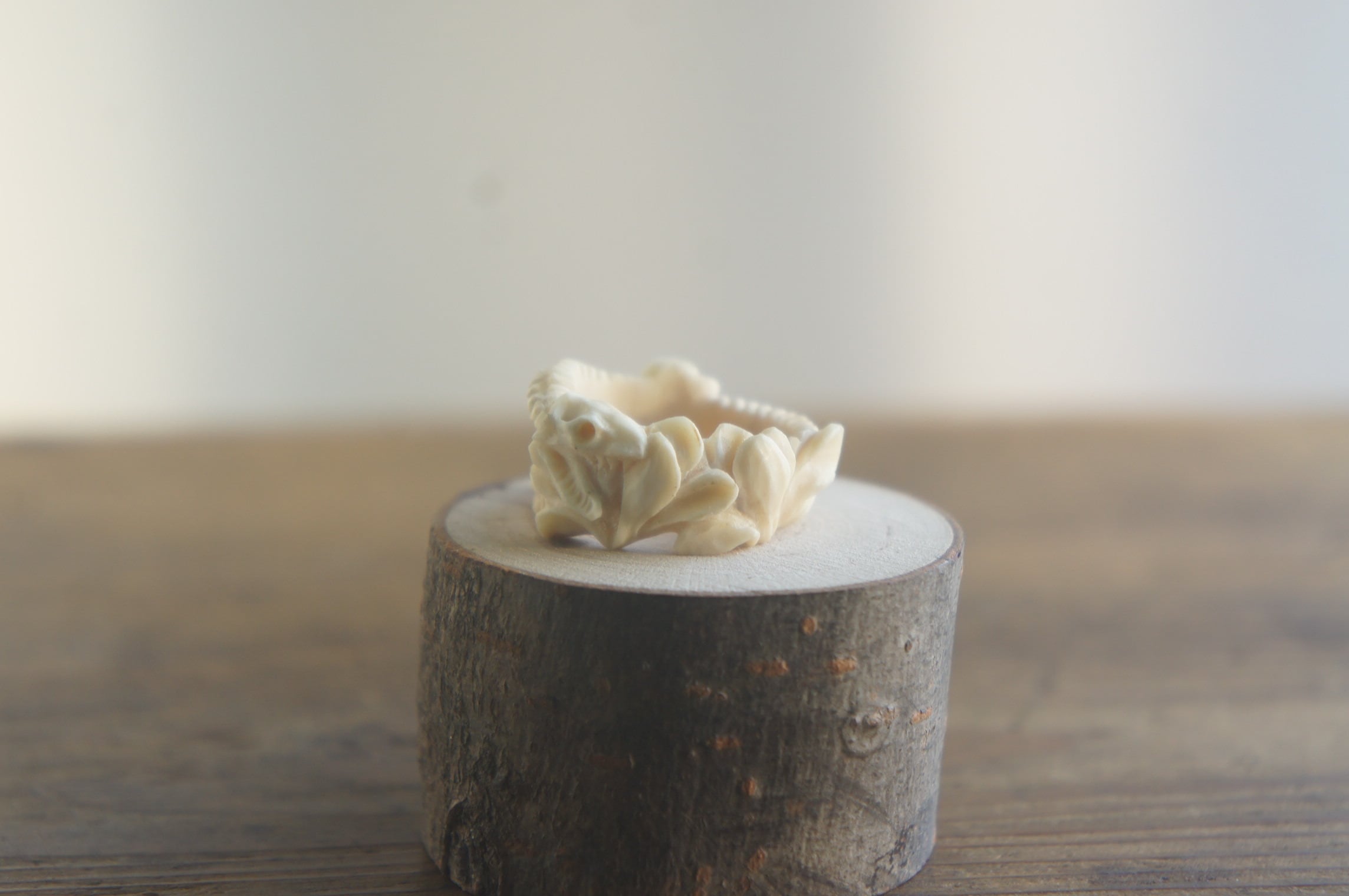鹿角彫刻「蛇骨と木蓮」指輪