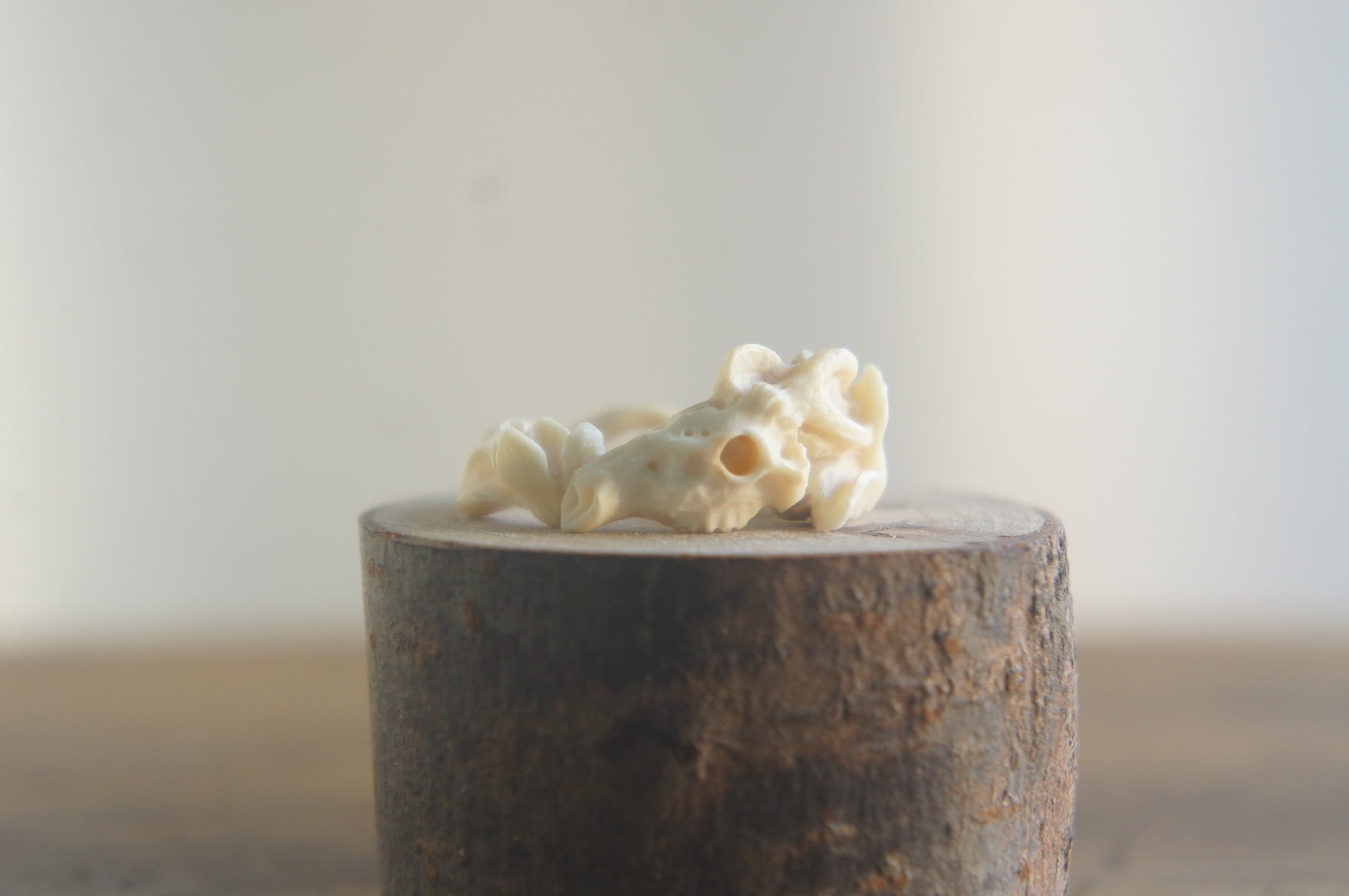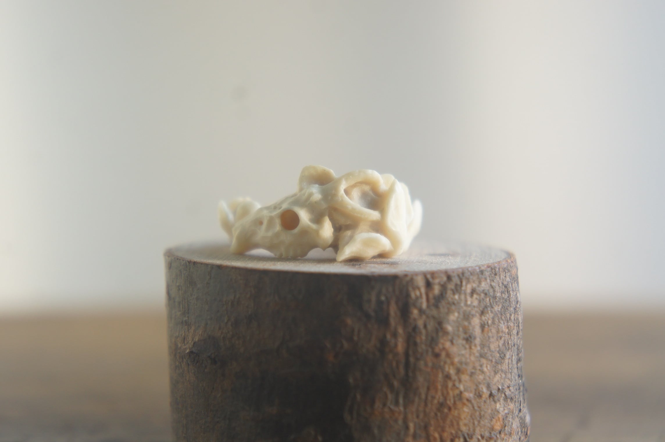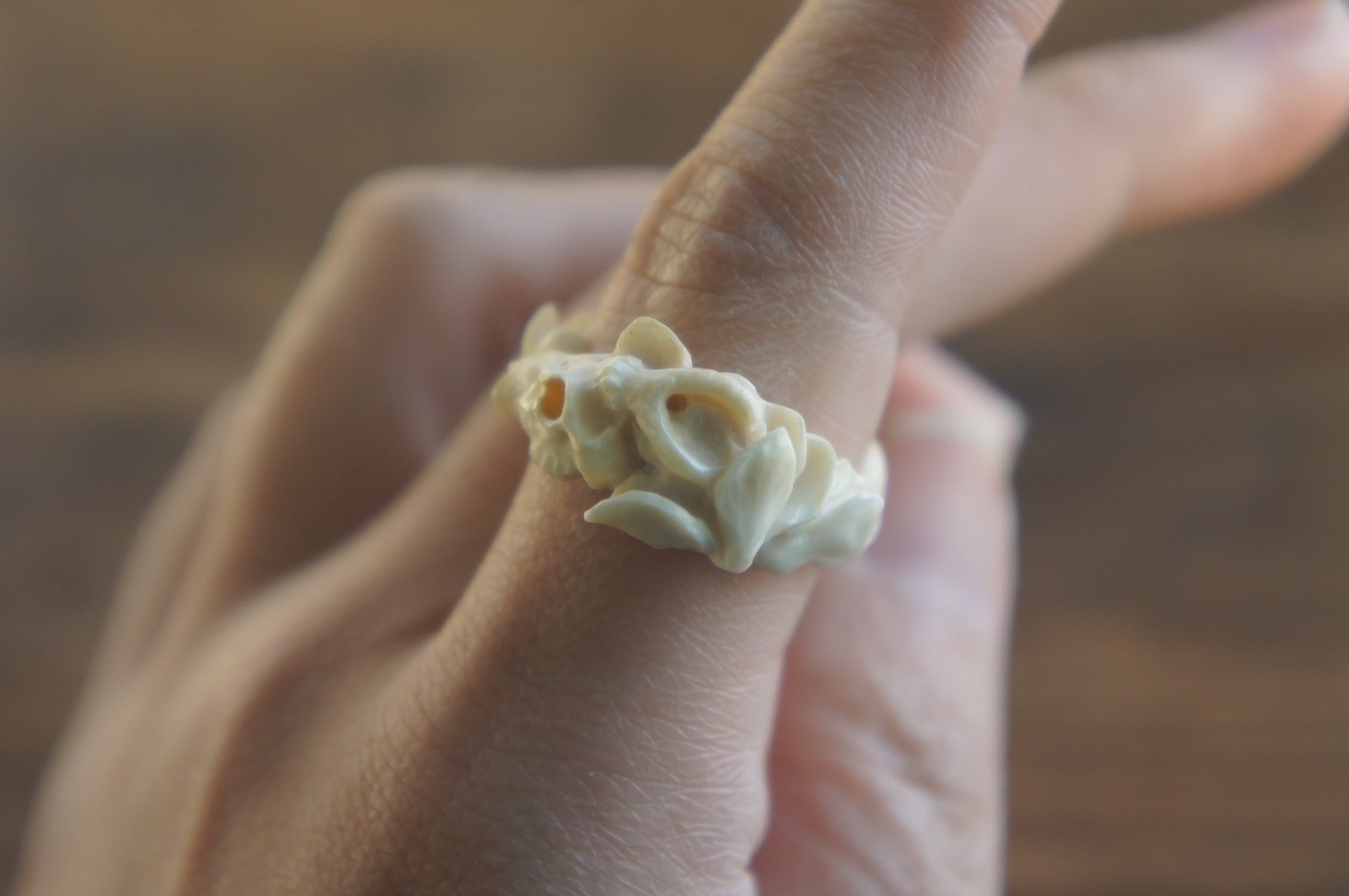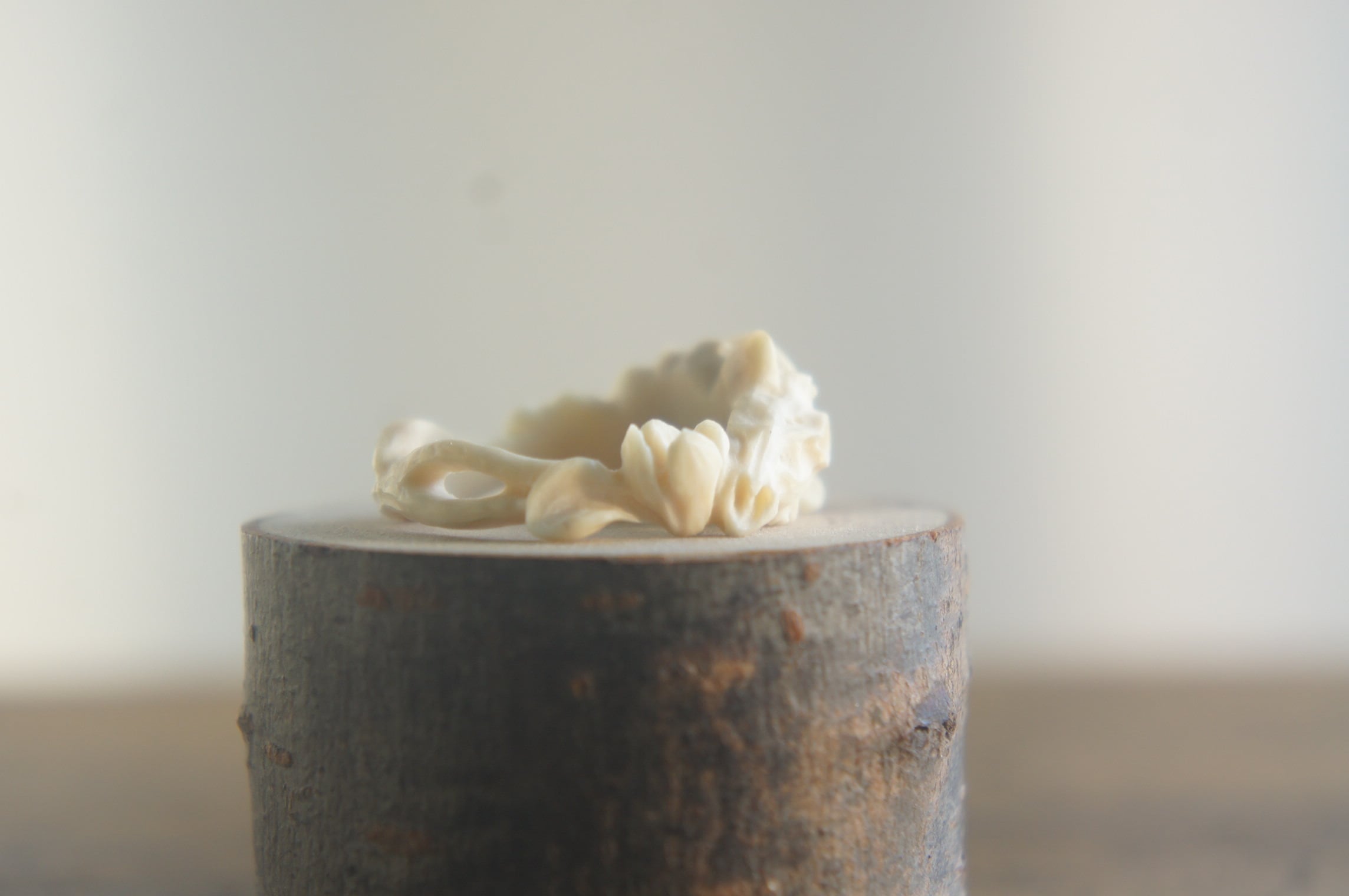 鹿角彫刻「鹿頭骨と木蓮」指輪