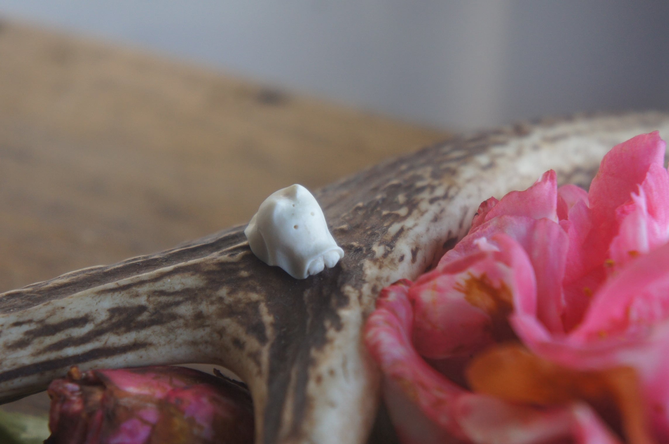 鹿の角から彫刻した、指先ほどの小さなおばけ。