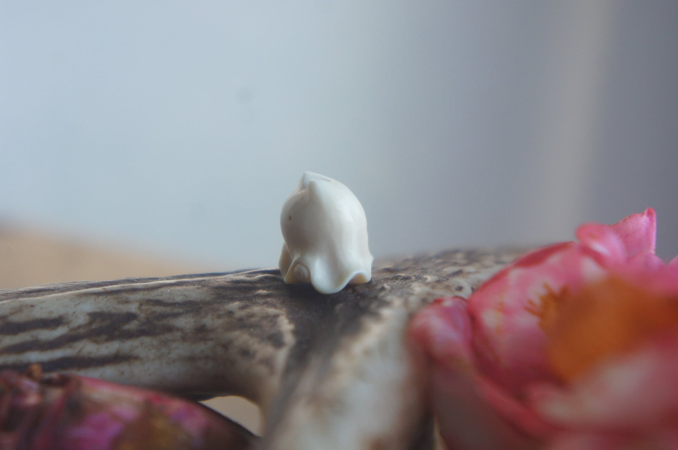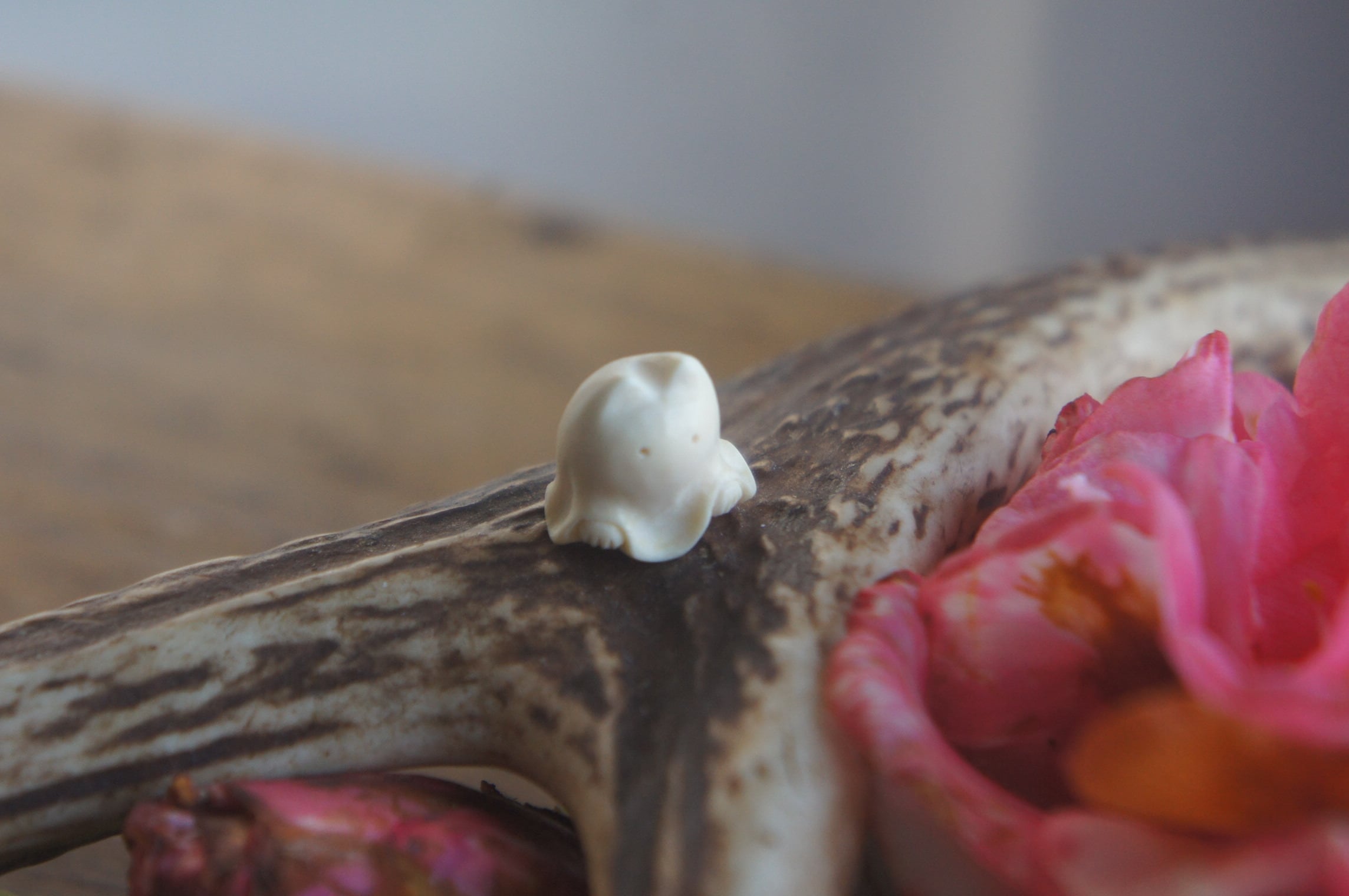 鹿の角から彫刻した、指先ほどの小さなおばけ。