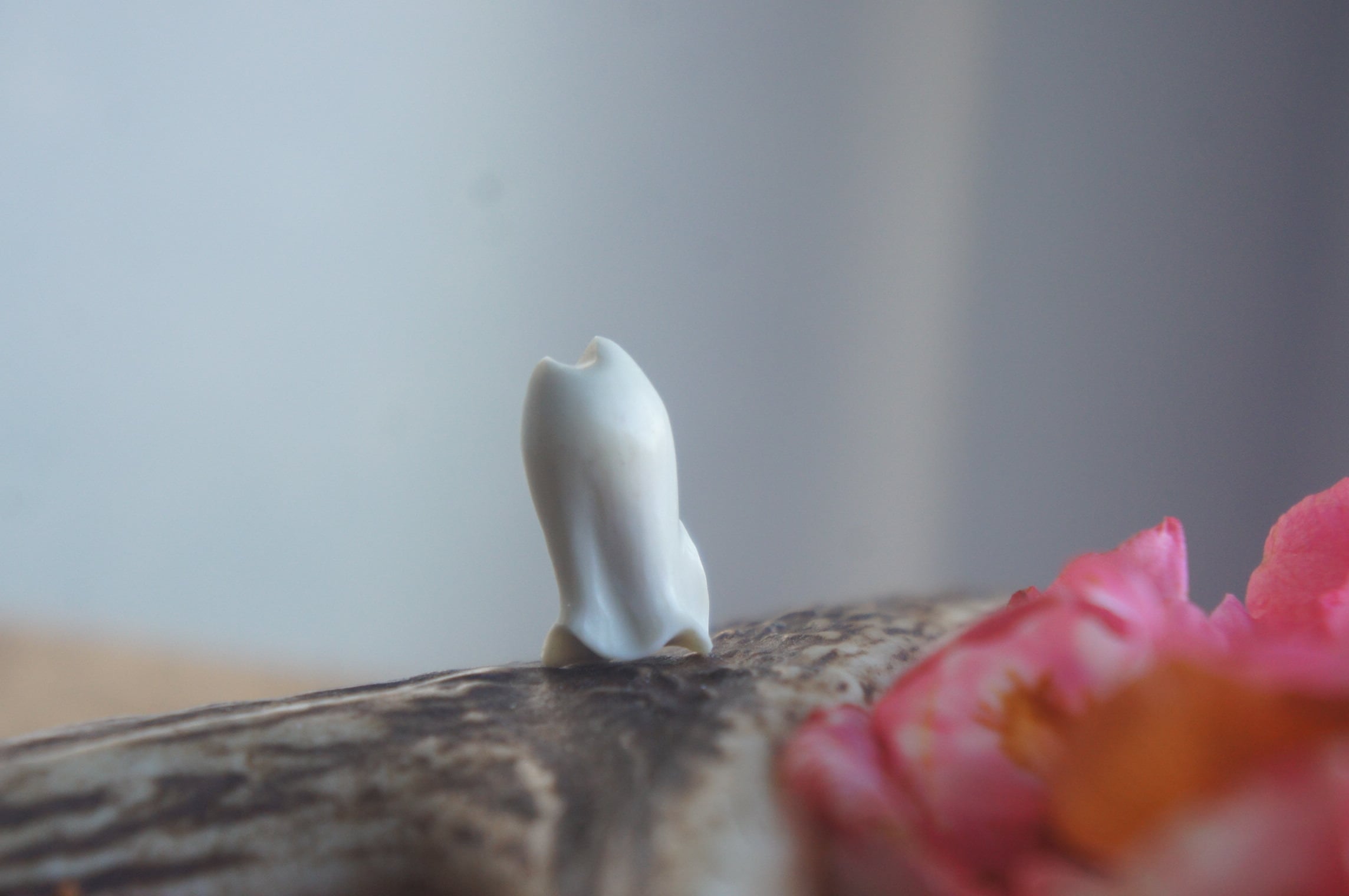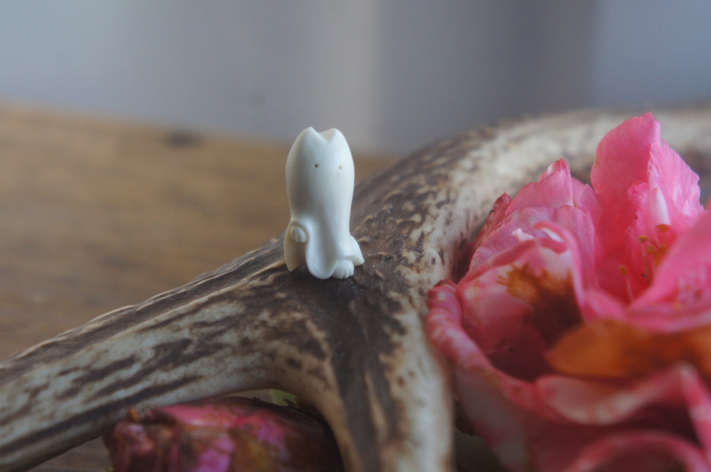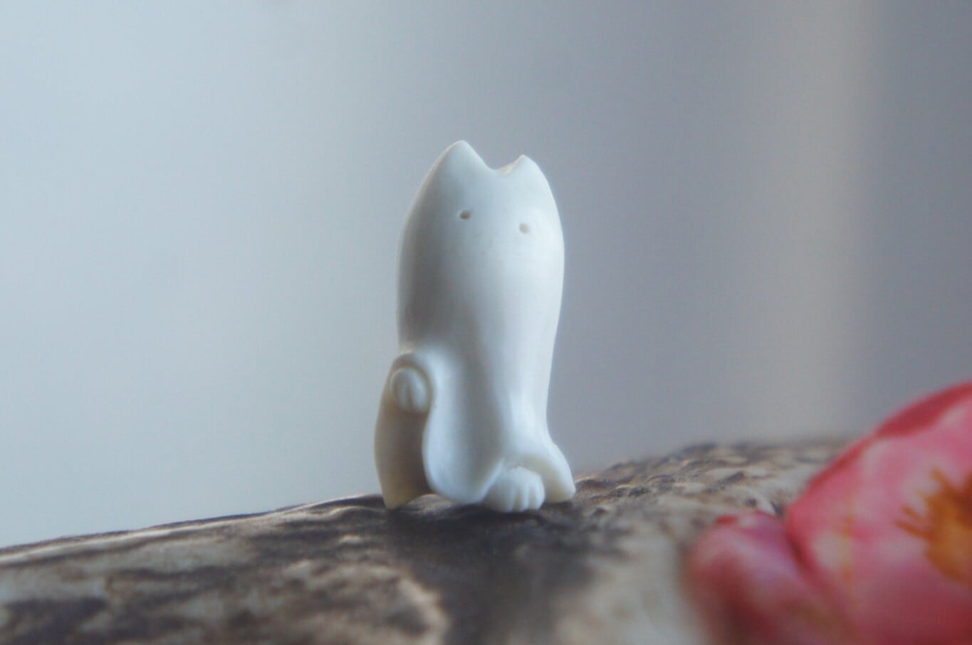 鹿の角から彫刻した、指先ほどの小さなおばけ。