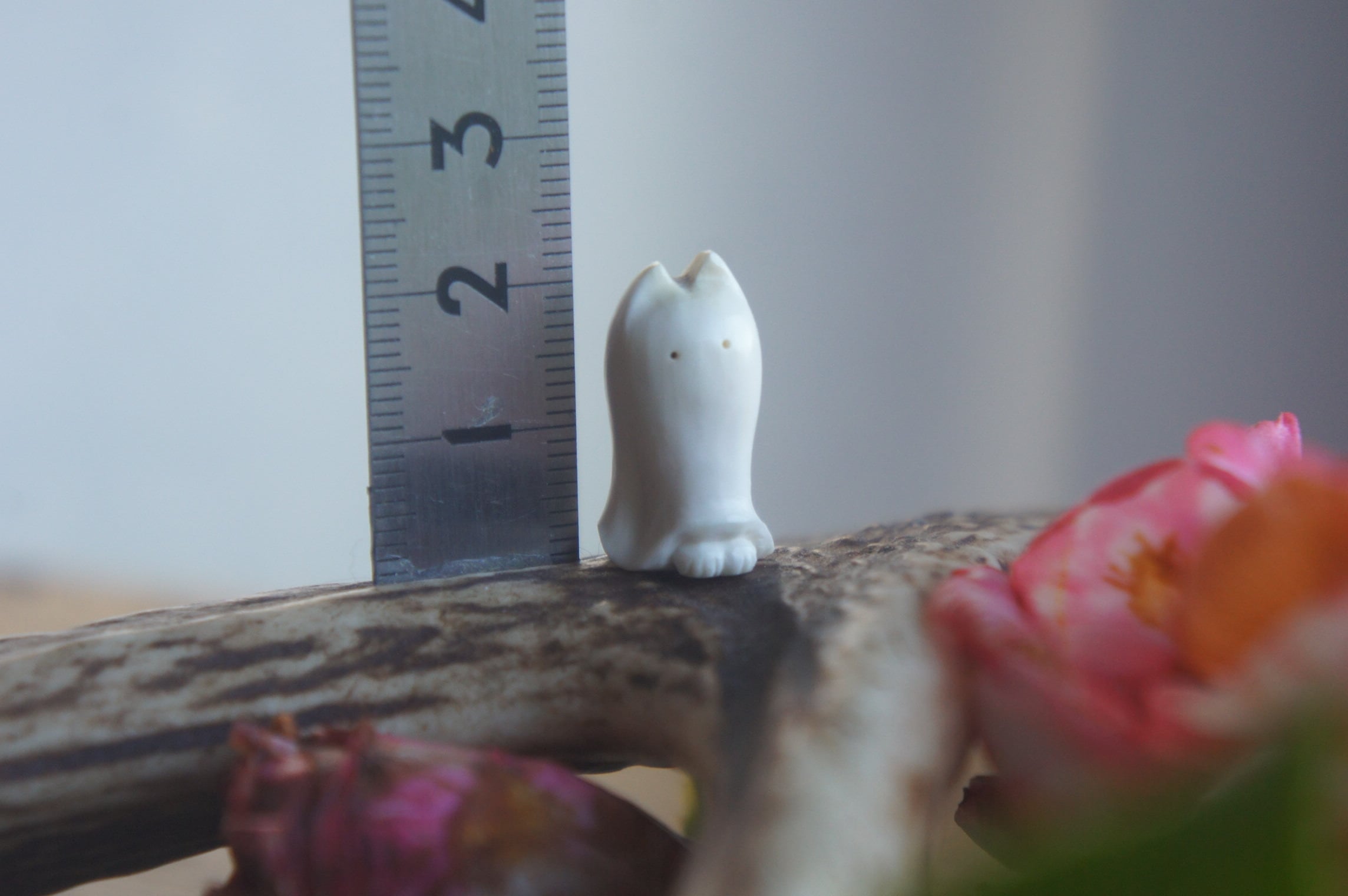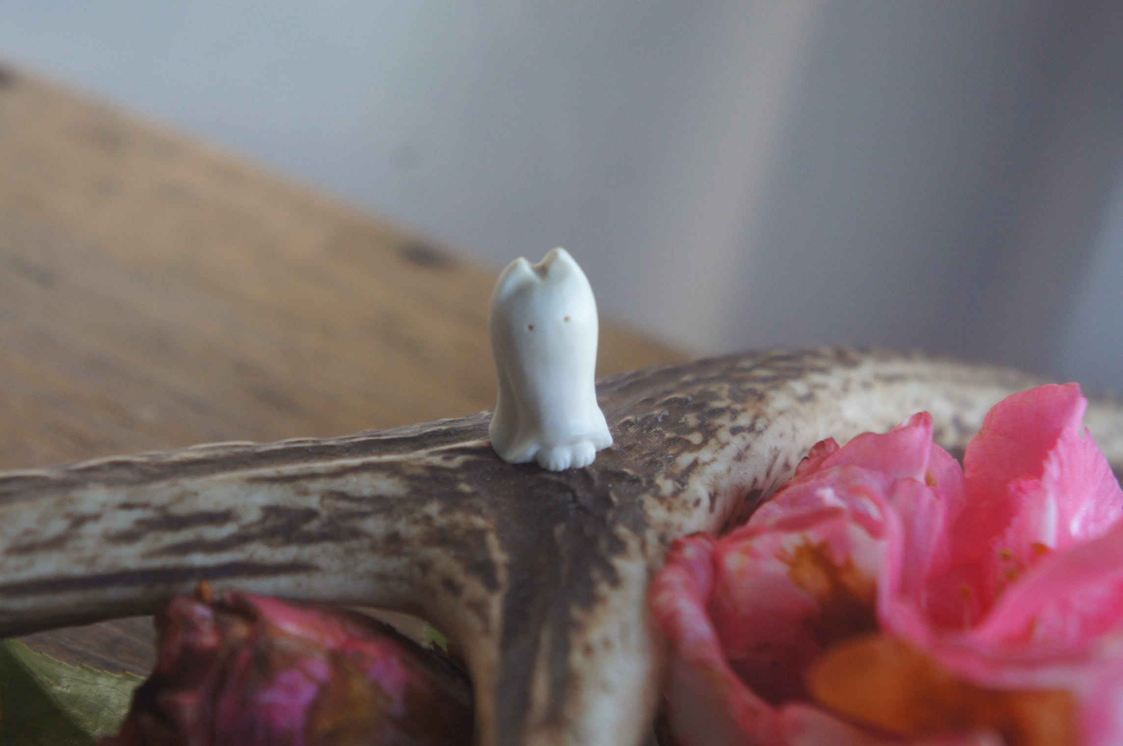 鹿の角から彫刻した、指先ほどの小さなおばけ。