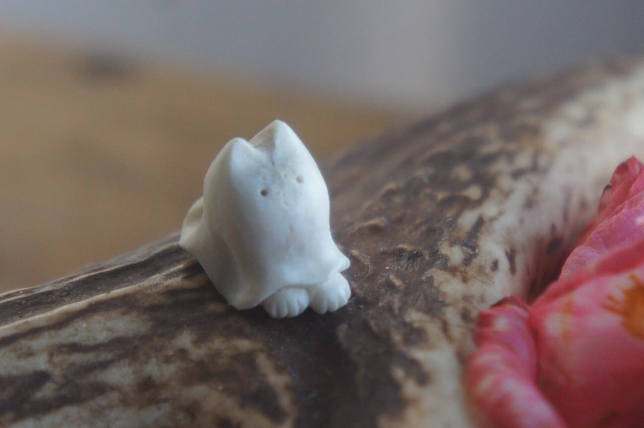 鹿の角から彫刻した、指先ほどの小さなおばけ。
