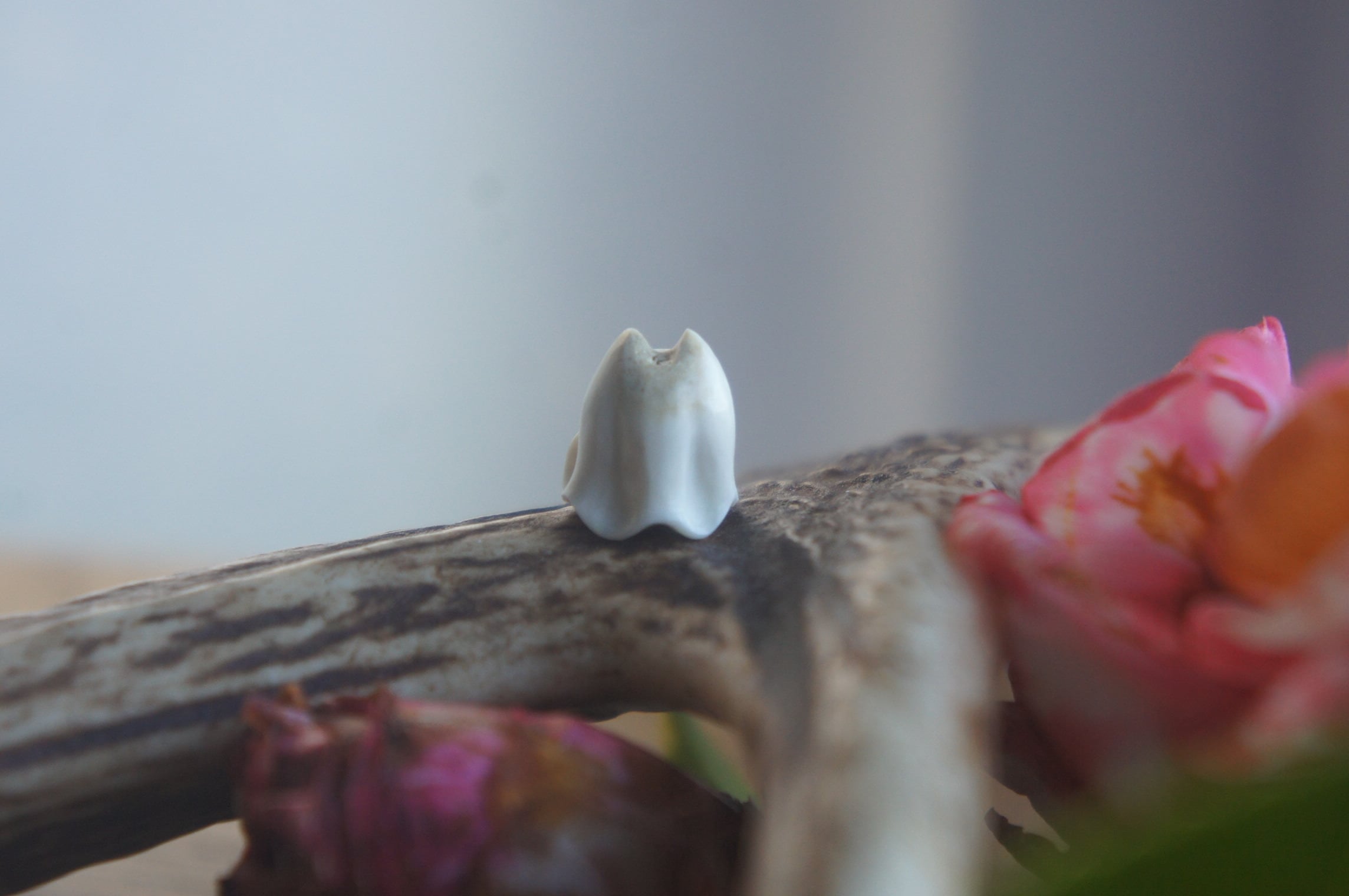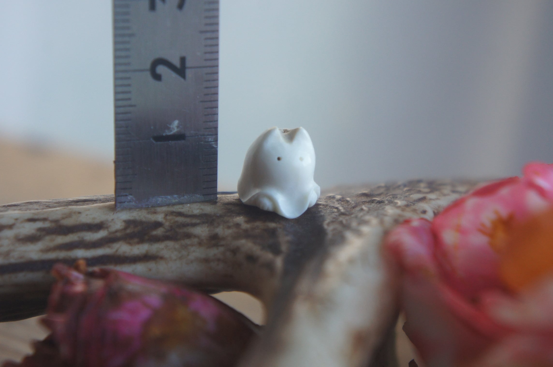 鹿の角から彫刻した、指先ほどの小さなおばけ。
