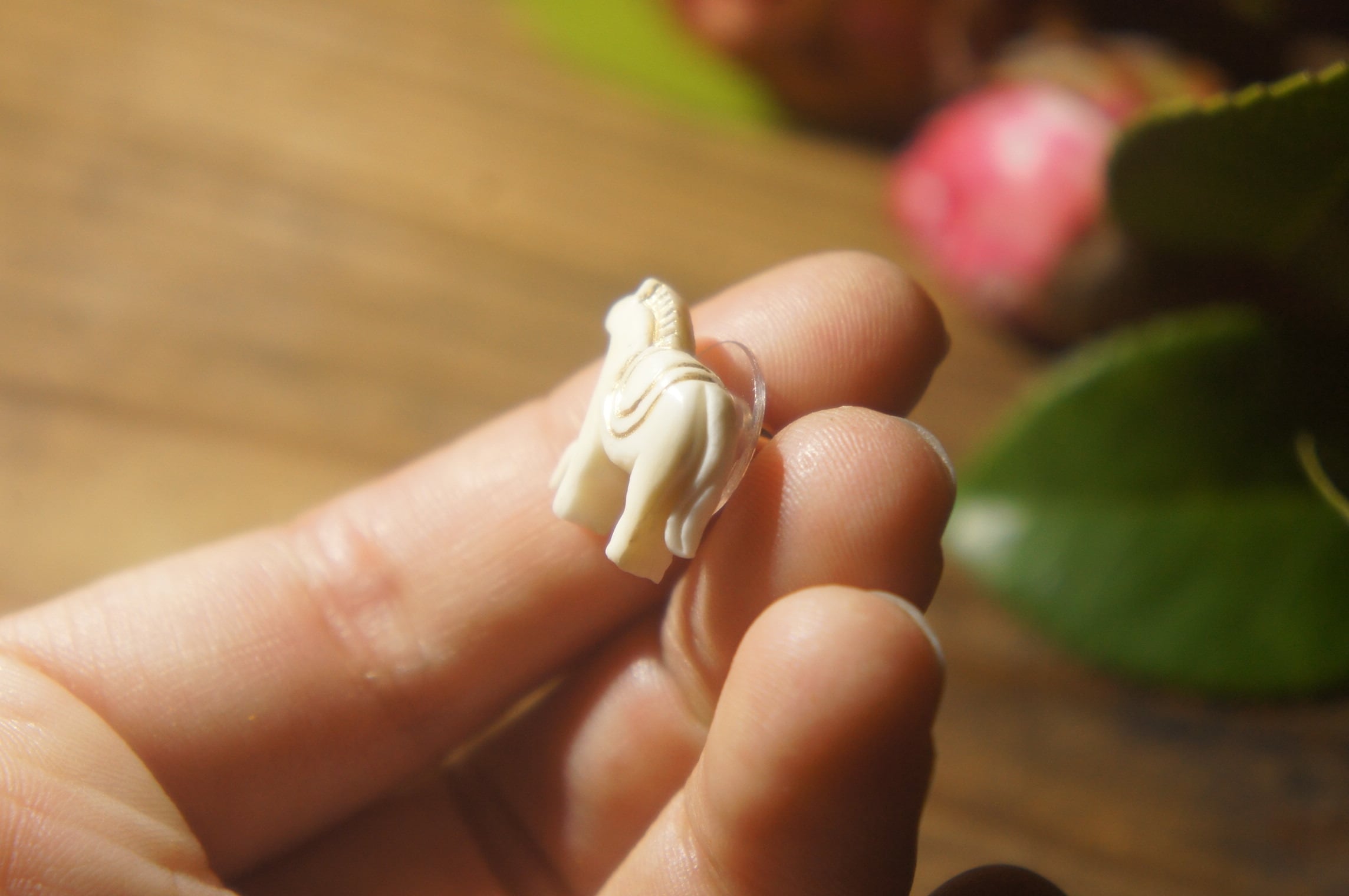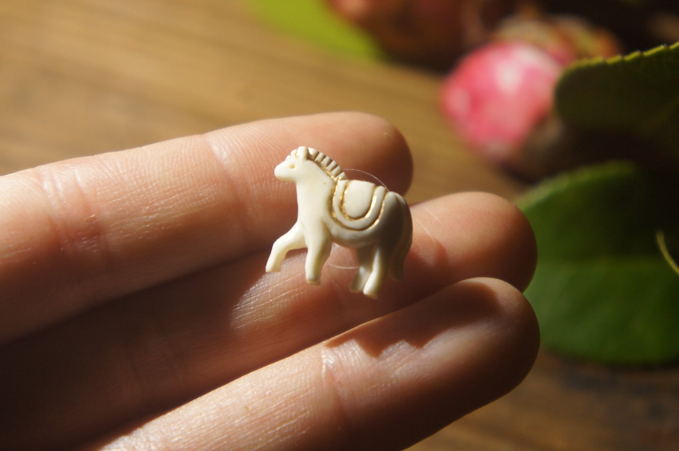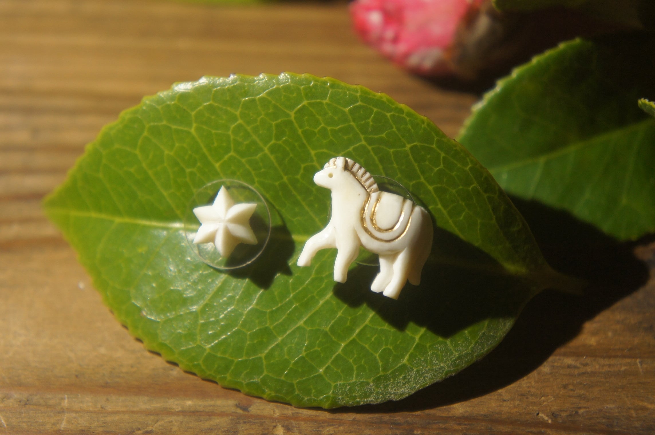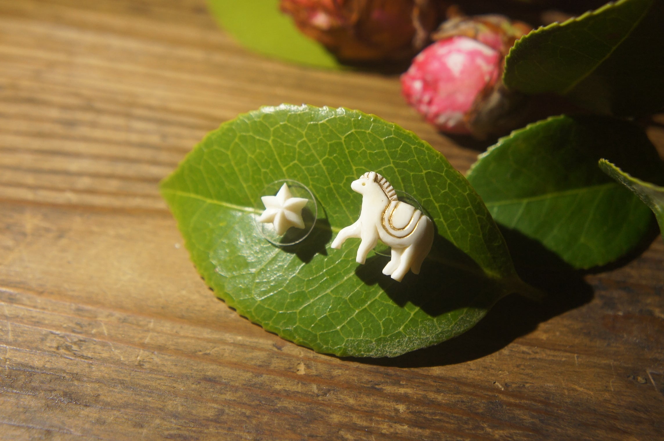 鹿の角を彫刻した小さな馬と、星のピアス。