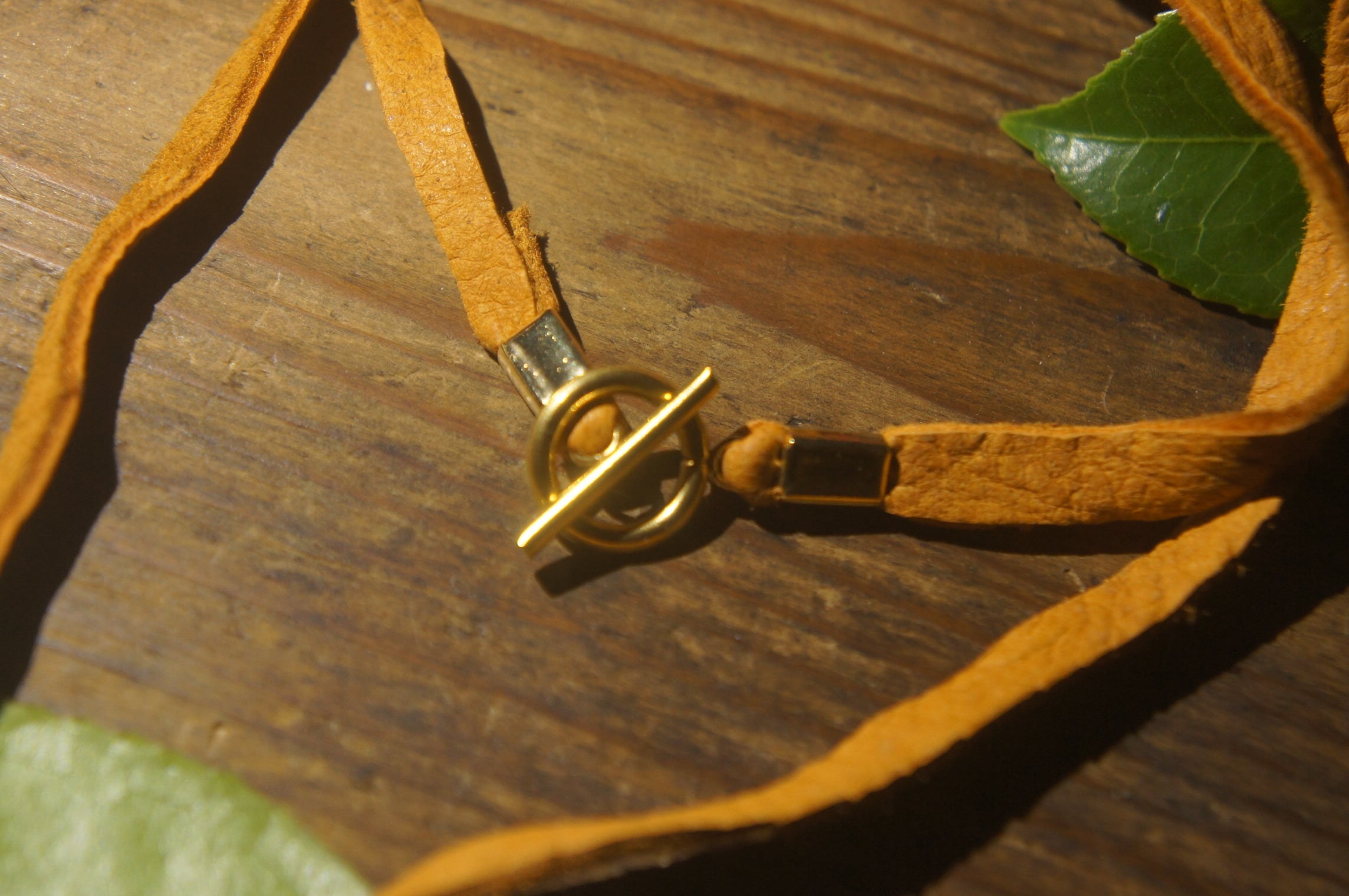 革紐は作家が獲った鹿の皮を