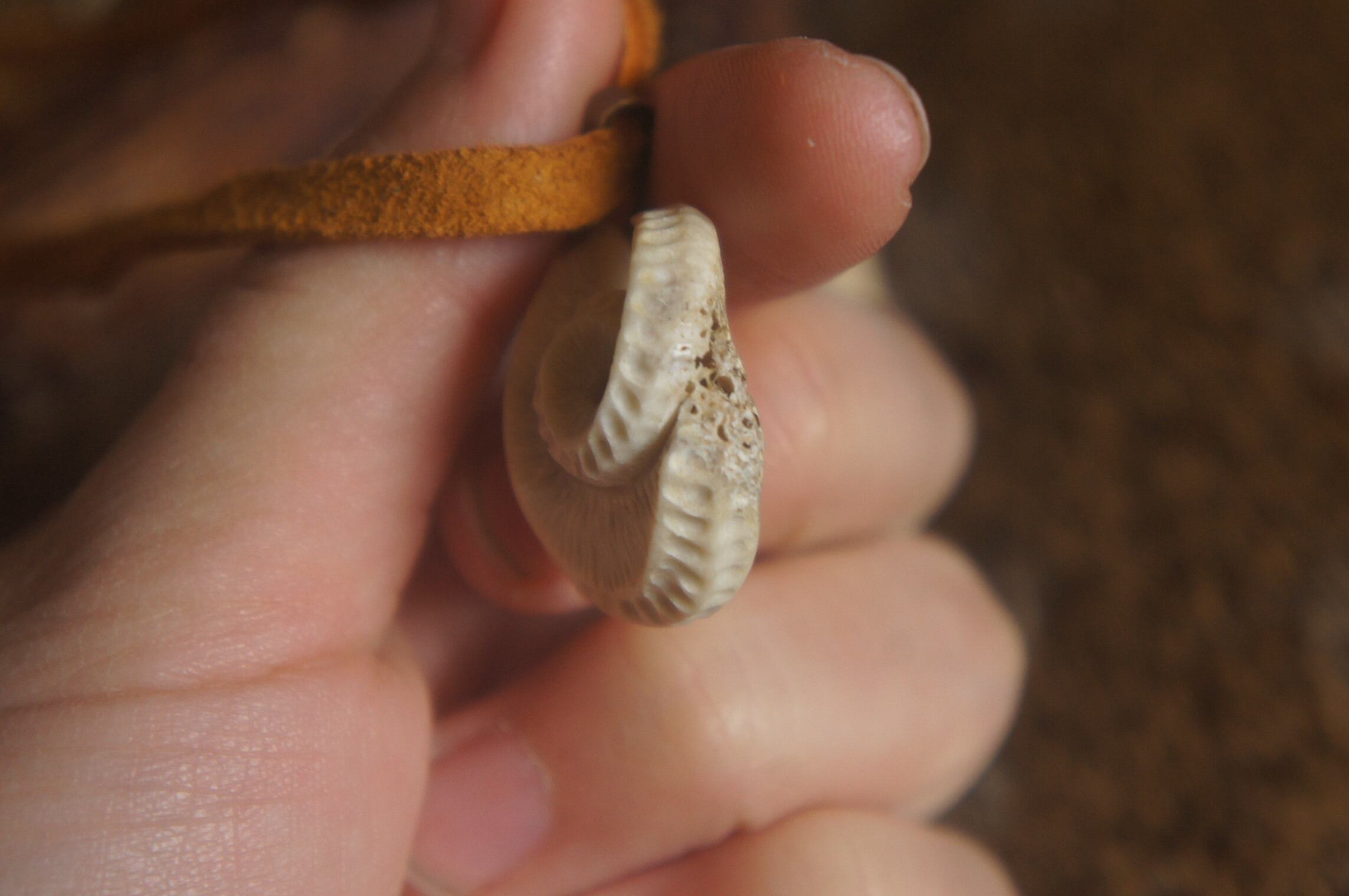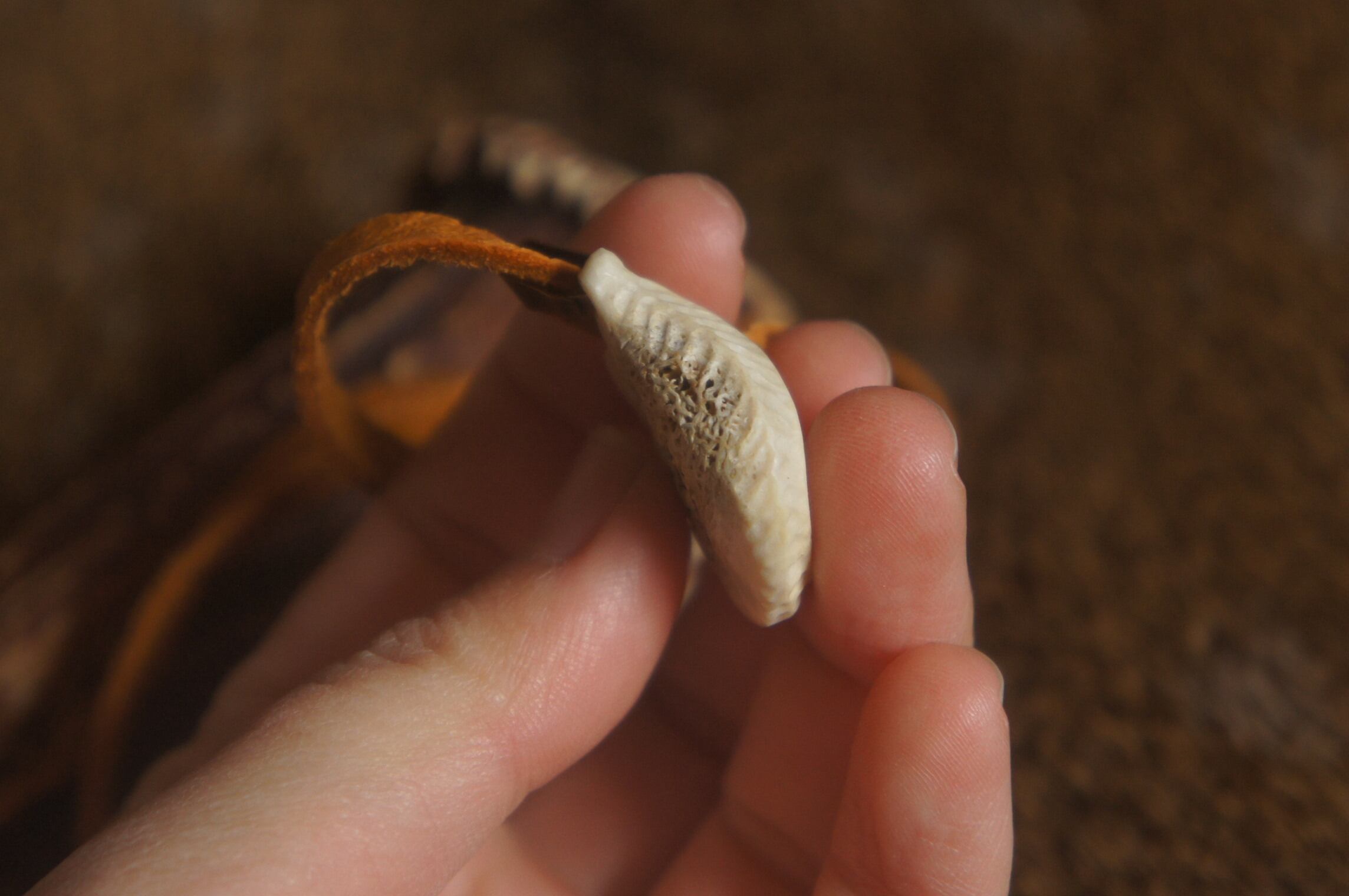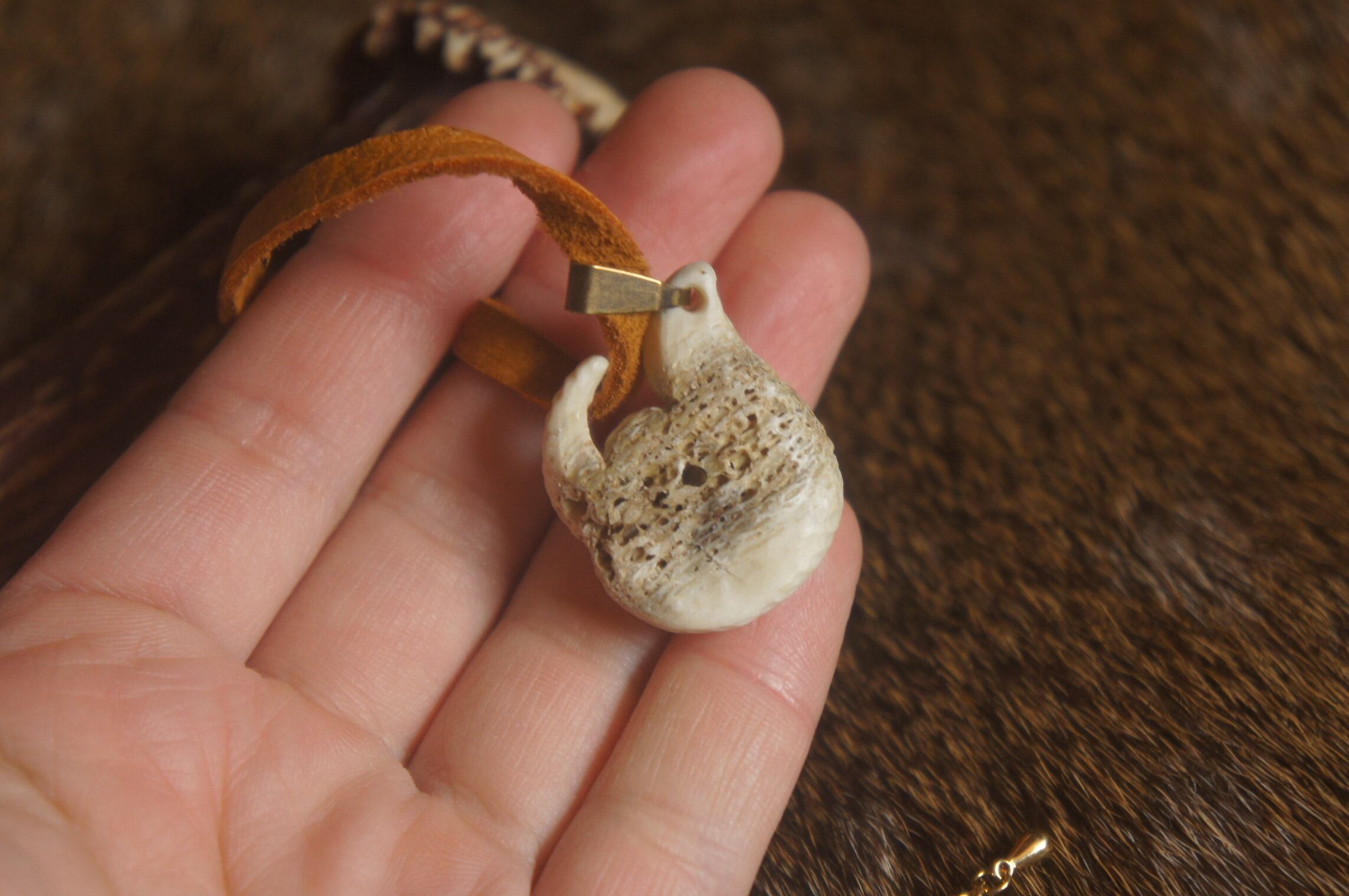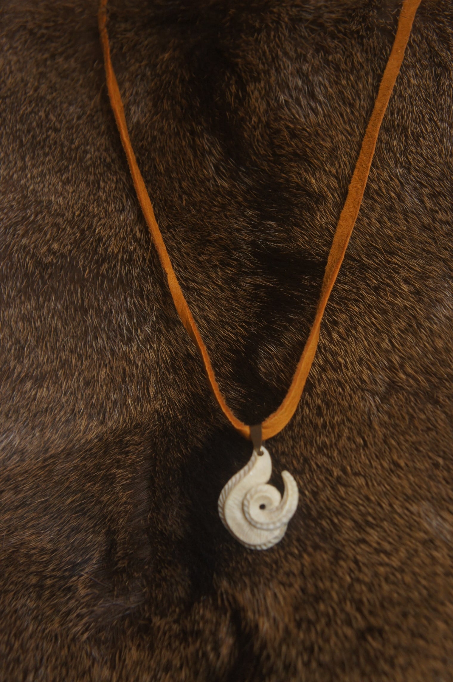 鹿の角からくるっと巻いた羊の角を彫刻しました。